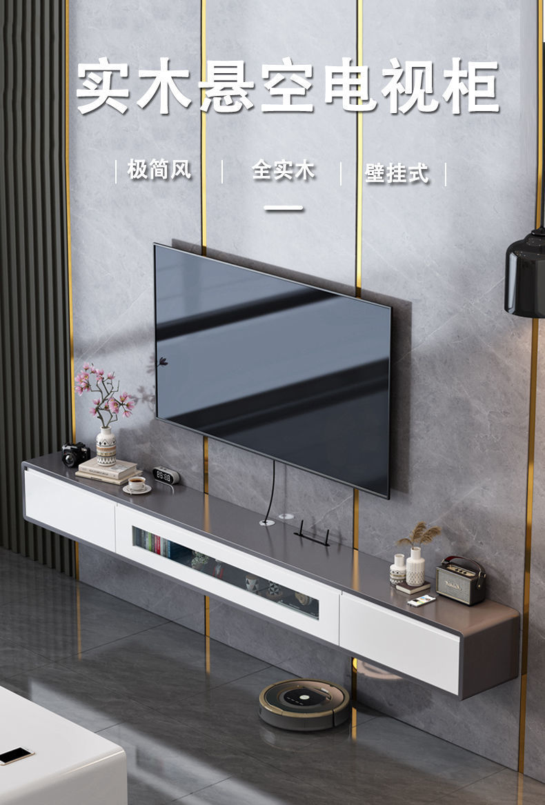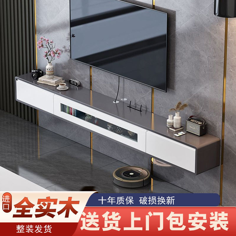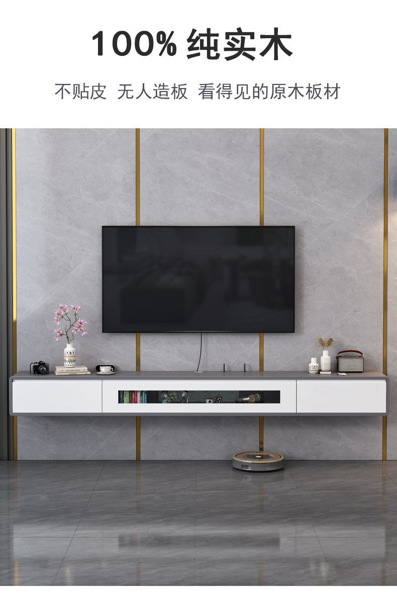 Подвесной ТВ-шкаф из массива дерева, настенный, для малогабаритной квартиры, светлый, роскошный, современный, минималистичный, для гостиной.