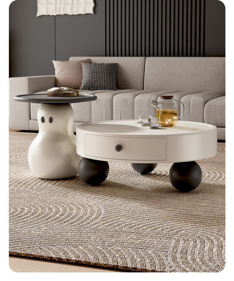 Новый кремовый стиль: комбинация кофейного стола и ТВ-тумбы в виде снеговика, современный, простой, креативный, для маленькой квартиры или гостиной с ящиками.