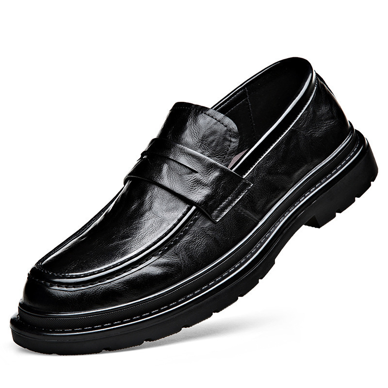 Новые мужские кожаные туфли, мужские слипоны для деловых встреч и свадеб, без шнурков, на толстой подошве, в британском стиле casual.