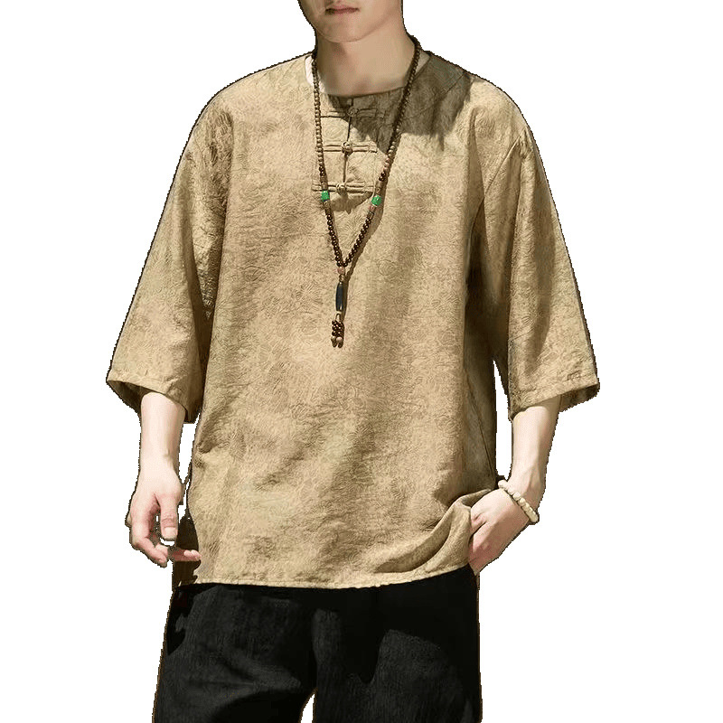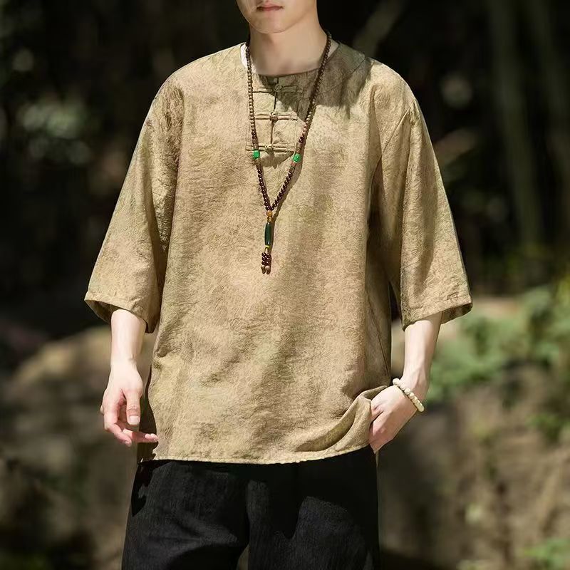 Летняя новая стильная литературная мужская одежда в стиле ретро, красивый новый костюм Тан в китайском стиле, тонкая рубашка с короткими рукавами Hanfu
