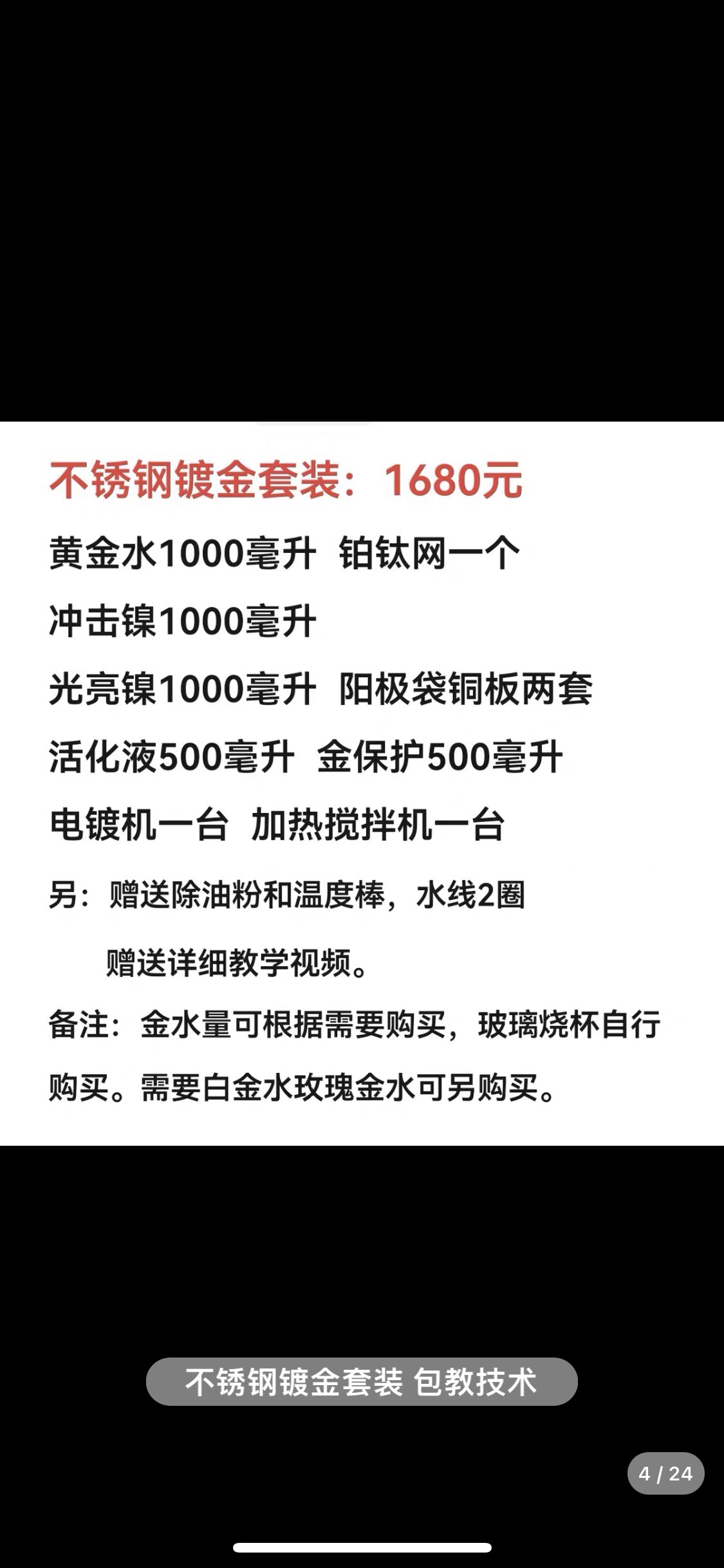 полный комплект; Полный набор аппаратных аксессуаров; Медный позолоченный набор, включая технологию обучения; Позолоченный набор из нержавеющей стали, включая обучающую технологию; Набор для позолоты из цинкового сплава, включая обучающую технологию; 14К износостойкая золотая вода 100мл; 24-каратная нержавеющая сталь, позолоченная вода, 100 мл; 18-каратное золото, вода 100 мл.; 18-каратное золото, вода 500 мл.; 18-каратное золото, вода 1000 мл.; 24-каратная золотая вода 100 мл; 24-каратная золотая вода 500 мл; 24-каратная золотая вода 1000 мл; Вода с высокой концентрацией 24-каратного золота, 1000 мл (быстрое покрытие); Винтажная Золотая Вода 1000мл; Платиновая вода 100мл.; Платиновая вода 500мл.; Платиновая вода 1000мл.; вода из розового золота 100мл; Розовое золото вода 1000мл; Золото и серебро консервант 1000мл.; Супер яркая медная жидкость для покрытия дна, 1000 мл; Никелевый раствор для суперяркого покрытия днища, 1000 мл; Раствор для медного покрытия дна из цинкового сплава, 1000 мл; Раствор для родирования 100мл.; Гальваническая машина; Платиновая титановая сетка с ручкой.; Анодная пластина из фосфористой бронзы; Анодная никелевая пластина; Анодная медная пластина; Пистолет Черное Золото Вода 1000мл; Автоматический миксер с подогревом; Средство для удаления воска 1000мл.; Активированная вода 1000мл.; 14к износостойкое золото вода 1000мл; Шампанское золотая вода 1000мл; Вода розовое золото 500мл; 14к износостойкое золото вода 500мл; Пистолет черный жидкий 1000мл (база)