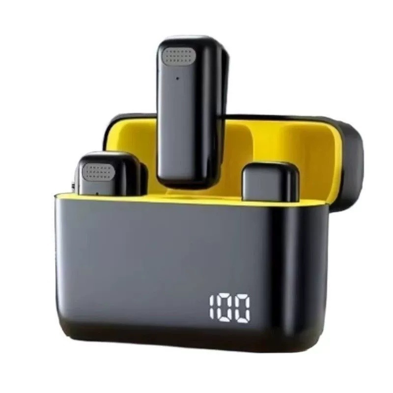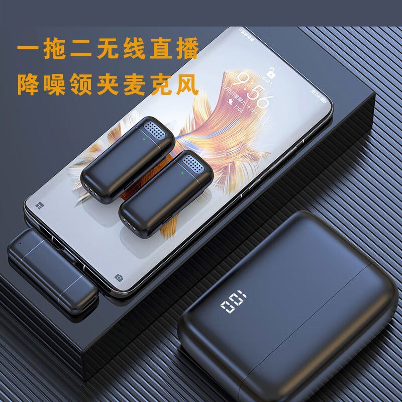 Беспроводной петличный микрофон (два в одном) с зарядным кейсом, цифровым дисплеем, шумоподавлением для улицы, для прямых трансляций.