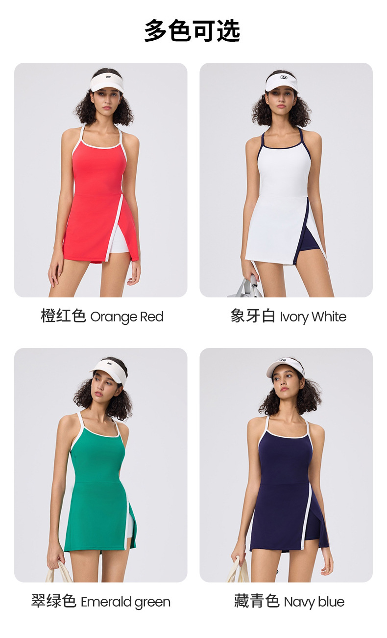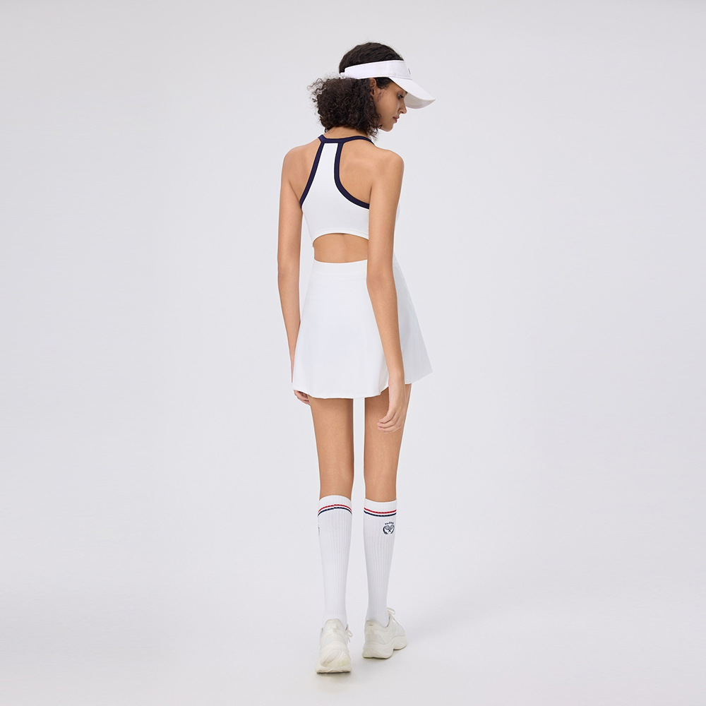 Летнее повседневное приятное для кожи платье для гольфа и тенниса с бретелькой на шее для женщин со встроенными леггинсами и облегающей юбкой для пиклбола.