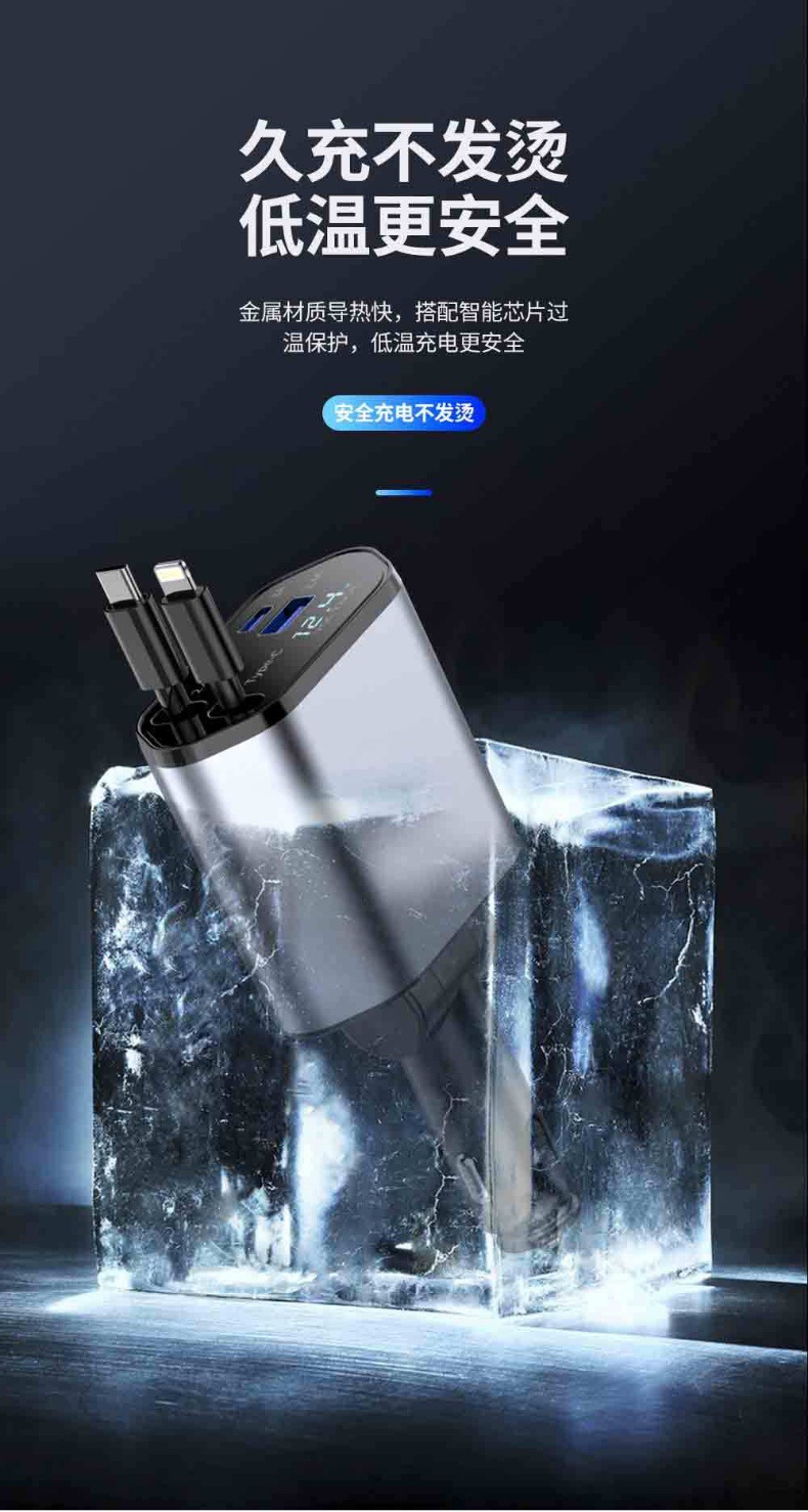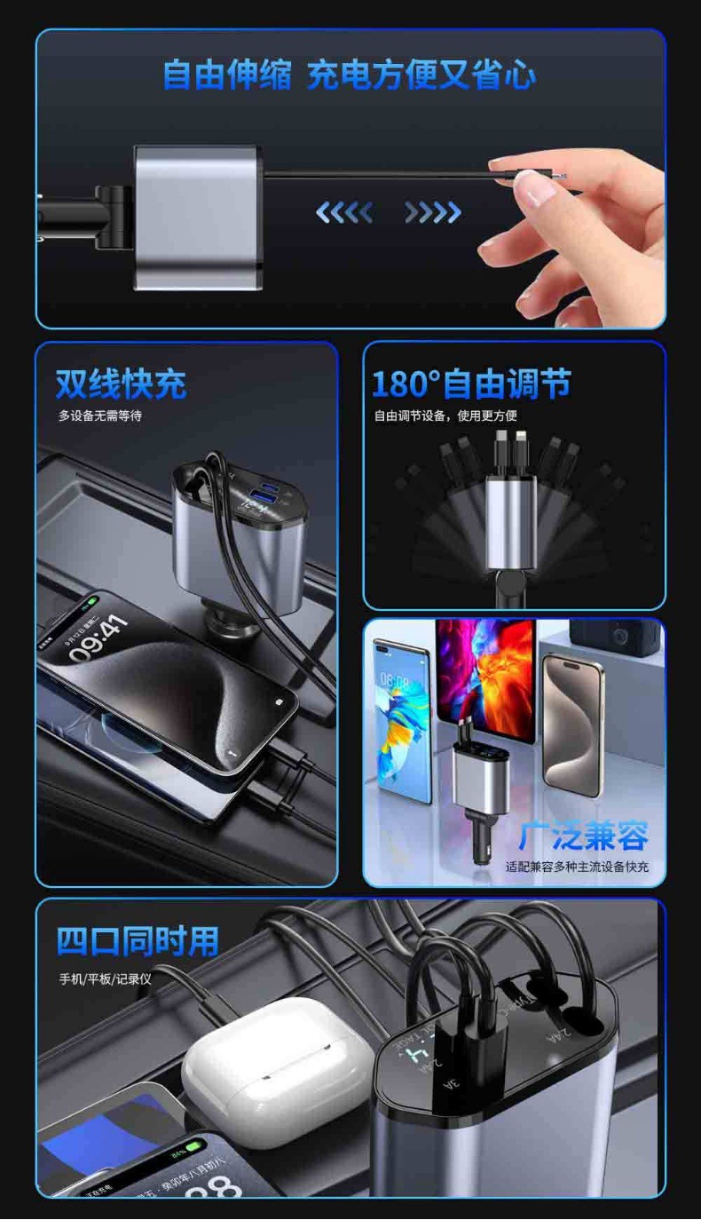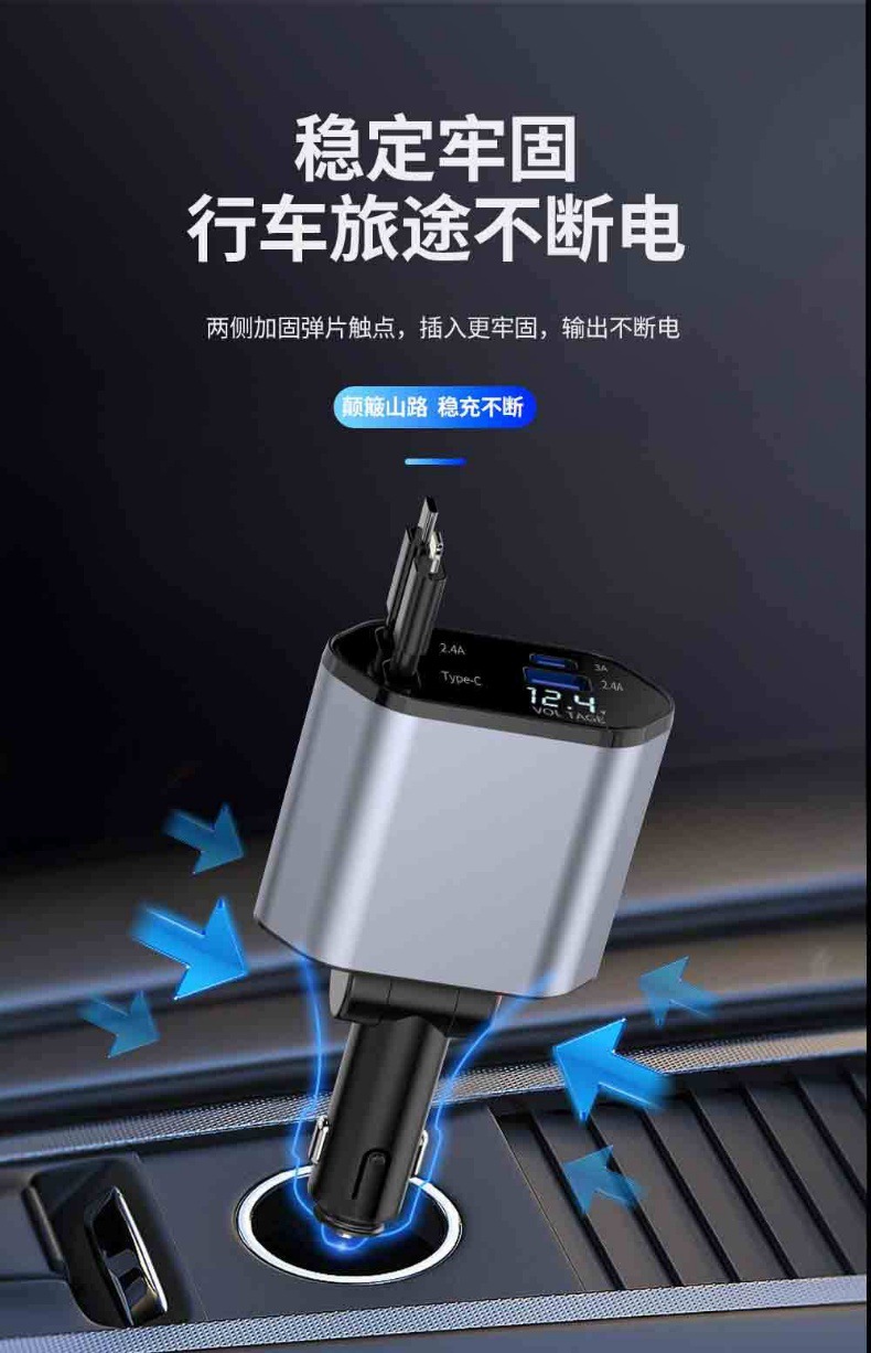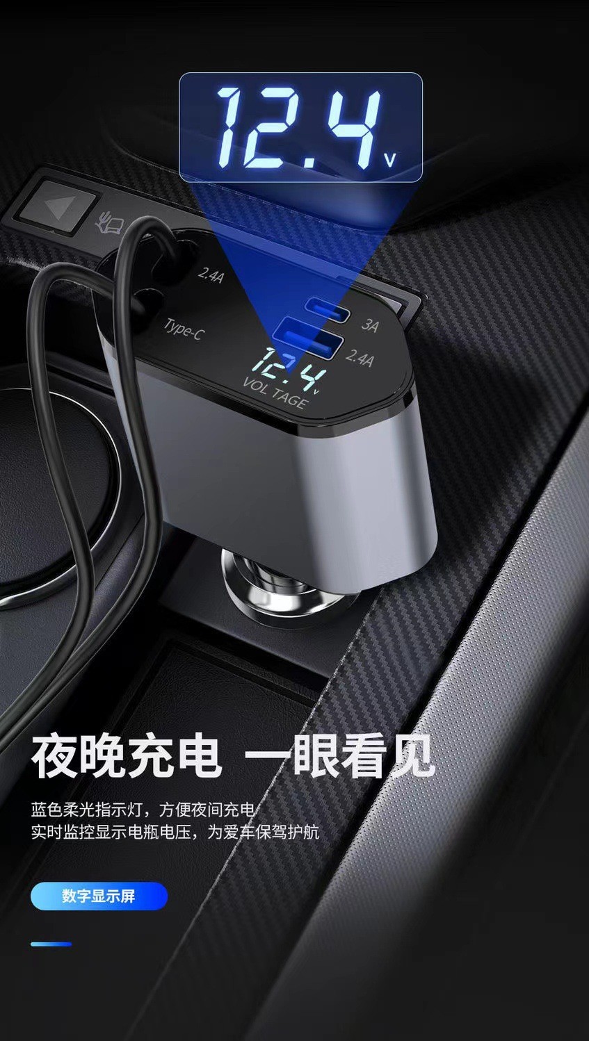Популярное трансграничное автомобильное зарядное устройство мощностью 120 Вт, многофункциональное универсальное автомобильное зарядное устройство с быстрой зарядкой, универсальное выдвижное автомобильное зарядное устройство с цифровым дисплеем из сплава, один-четыре