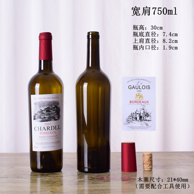Стеклянные бутылки для красного вина, пустые бутылки для вина, графины для вина, герметично закрытые бутылки фруктового вина объемом 750 мл, домашнее вино, винный шкаф, оптовая продажа бутылок для иностранного вина.