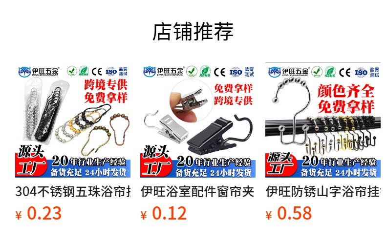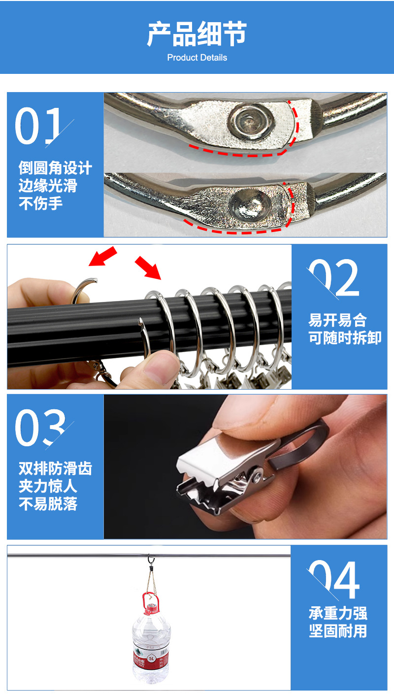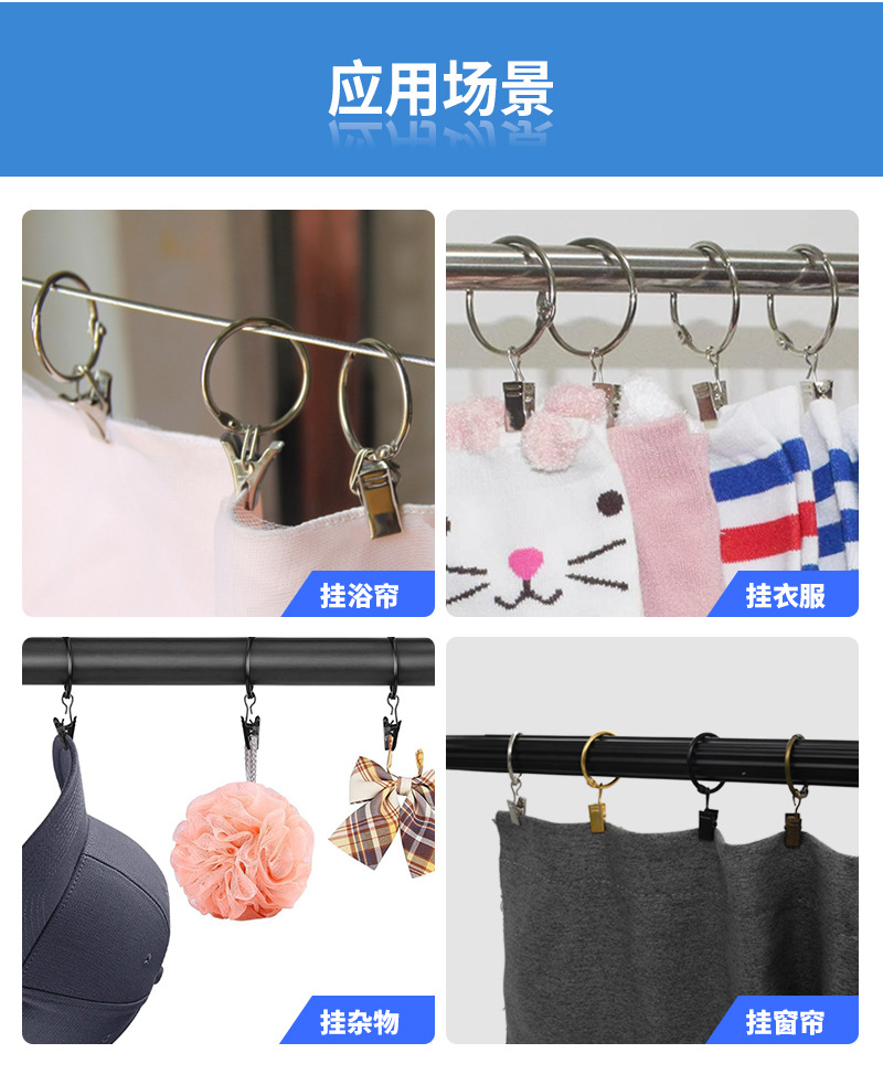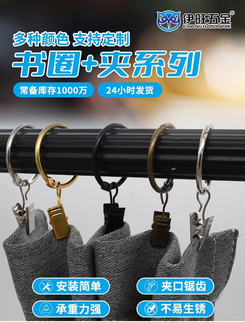 跨境热销顺滑窗帘环 金属窗帘杆窗帘挂环 悬挂式窗帘环夹