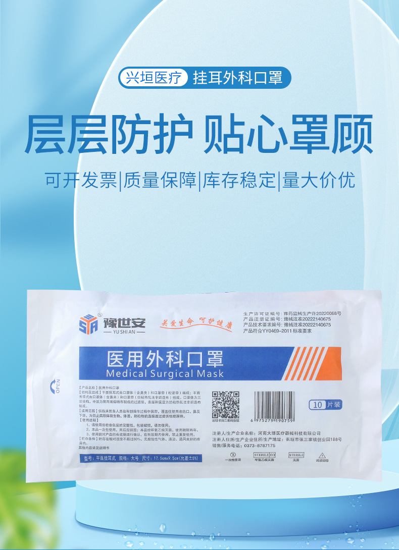 Производитель одноразовых медицинских хирургических масок с индивидуальной упаковкой для медицинских работников, обеспечивающих защиту от пыли и обеспечивающих медицинский уровень защиты.