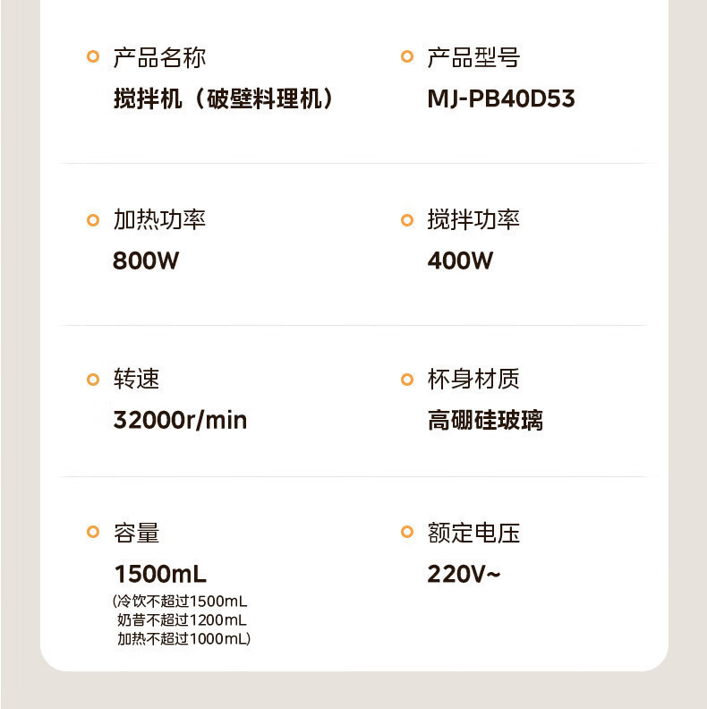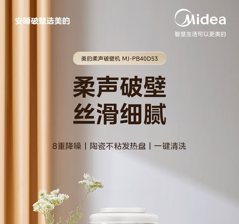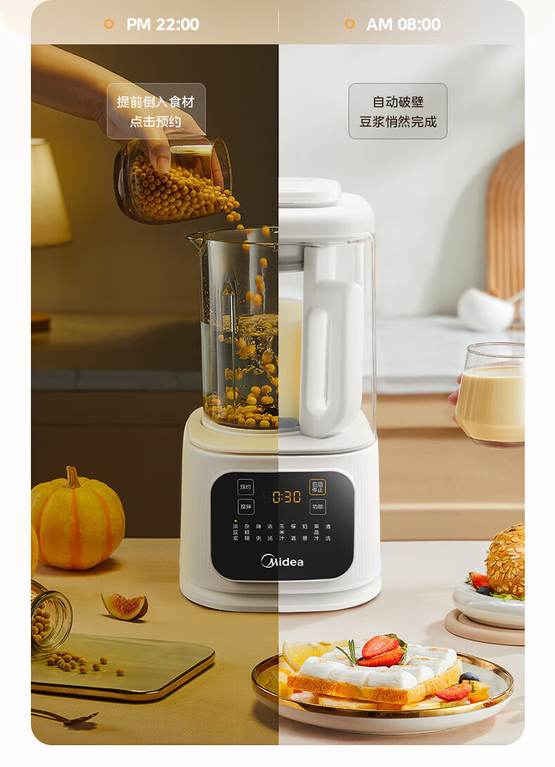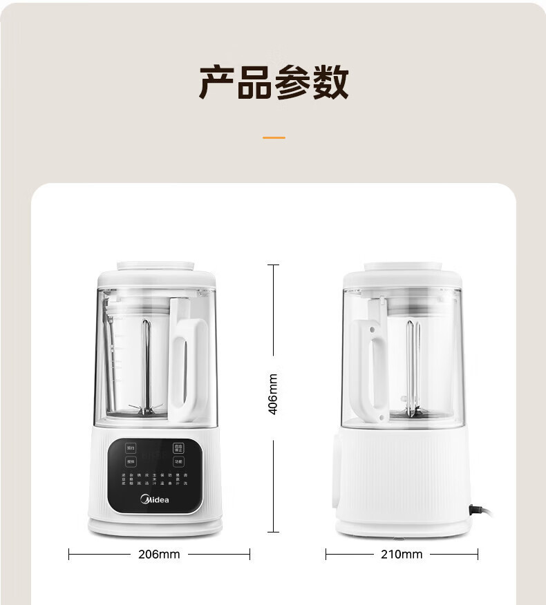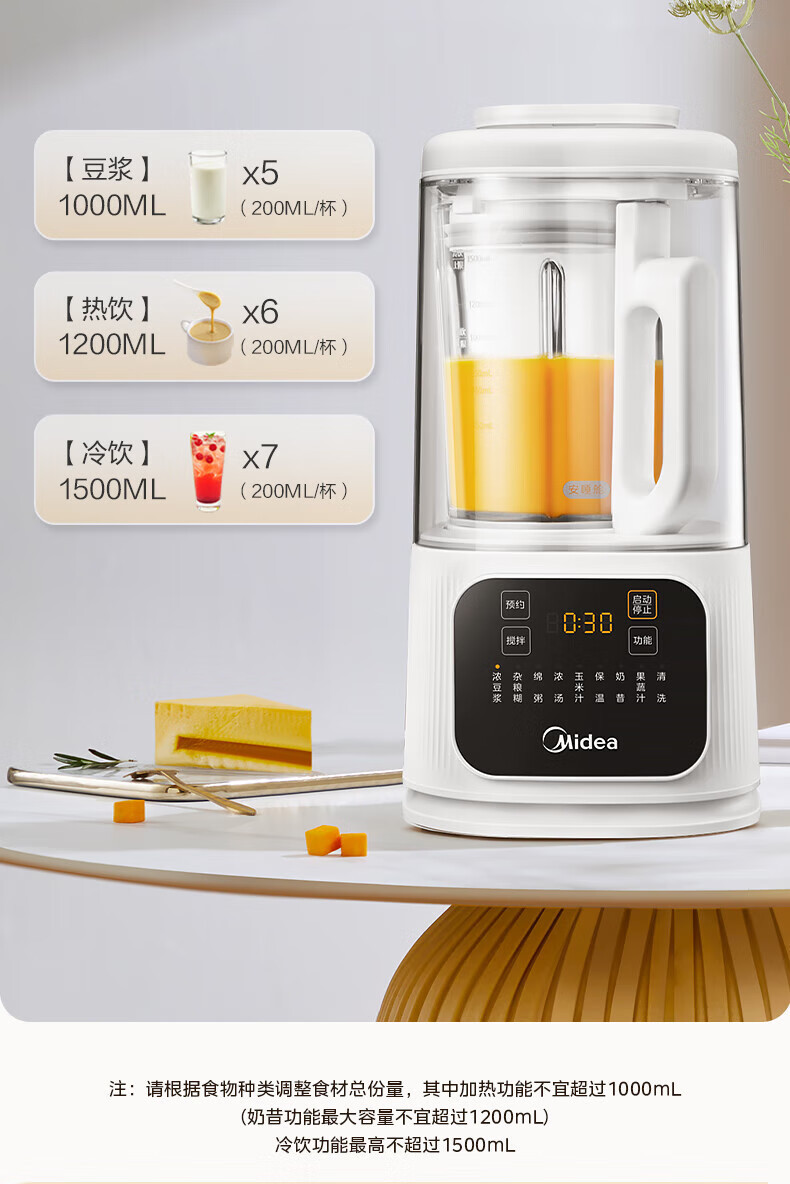 Блендер Midea MJ-PB40D53, малошумный бытовой, 1,5 л, большая емкость, умная резервная копия, полностью автоматическая чистка в одно касание