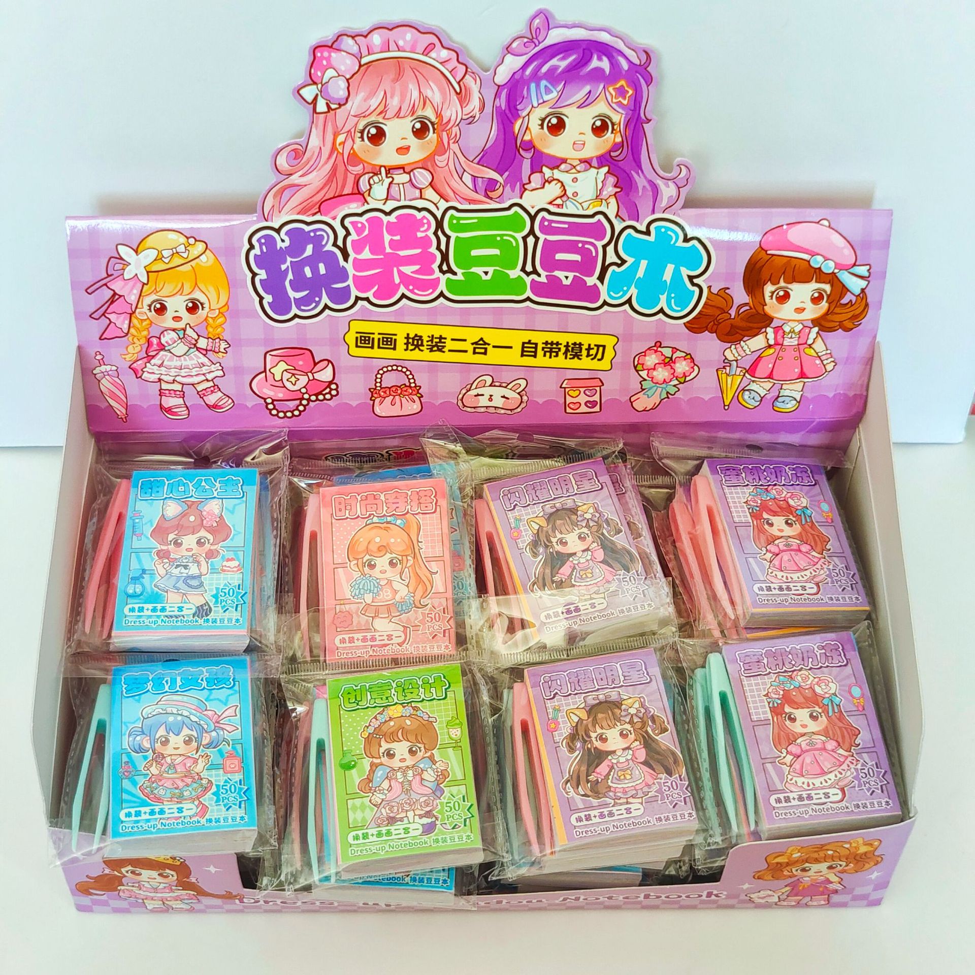 换装豆豆本(每本= 1镊子+2封面+6涂色人物+42张换装人物贴纸)(每盒12款式,12个不同封面)