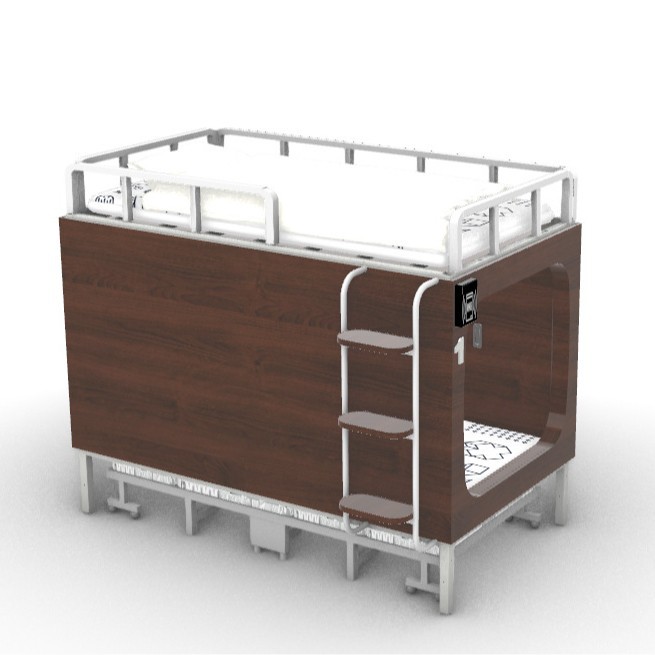 Многослойная доска из массива дерева может быть собрана с кроватью сверху и капсульной кроватью снизу. Космическая капсула — это раскладной диван-кровать.