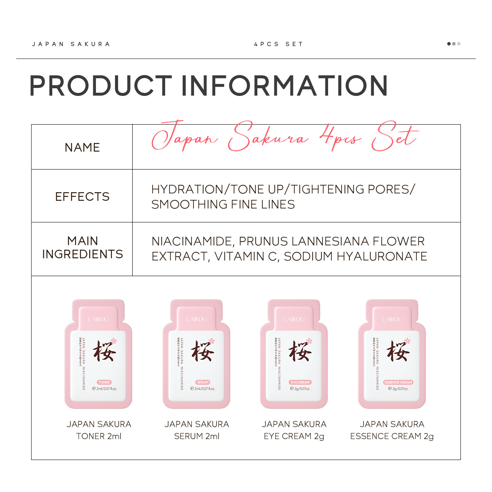 Laiko Sakura Malay, 4 упаковки (вода + крем + эссенция + крем для глаз), полный английский иностранный код, средства по уходу за кожей, трансграничные