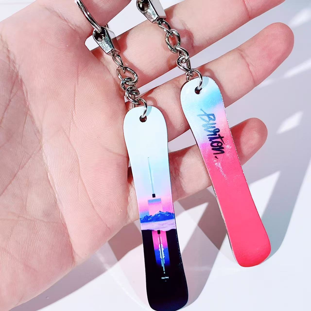 Металлический брелок для ключей, лыжник в том же стиле, сноуборд, мини, маленький мини-сноуборд, подвеска, ювелирная модель, подарок для друга снега