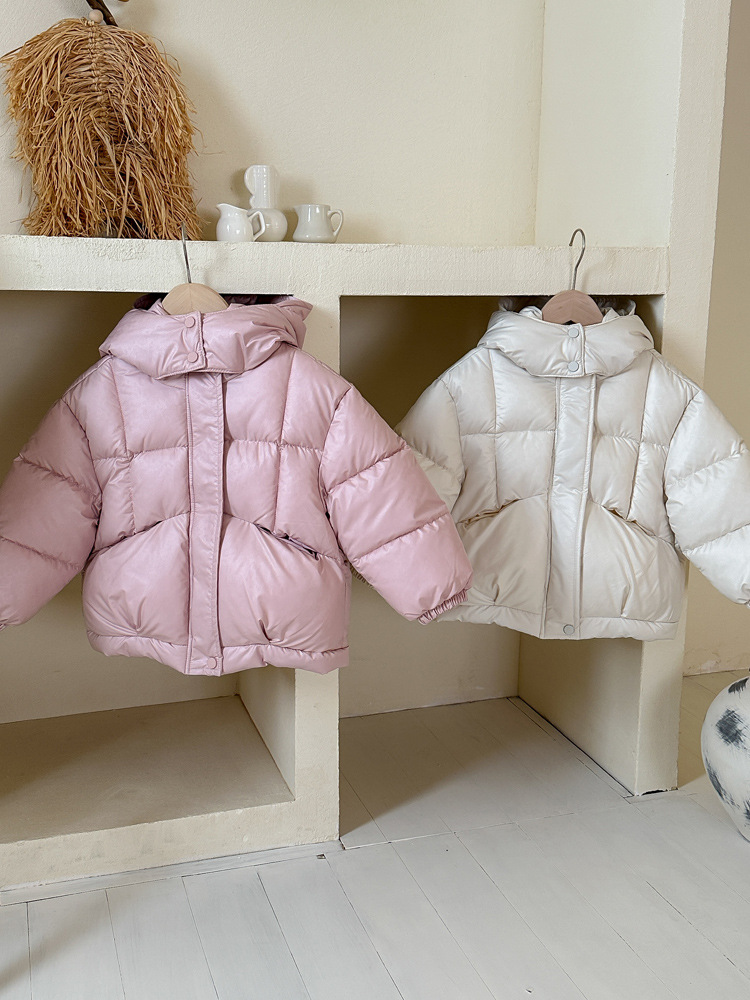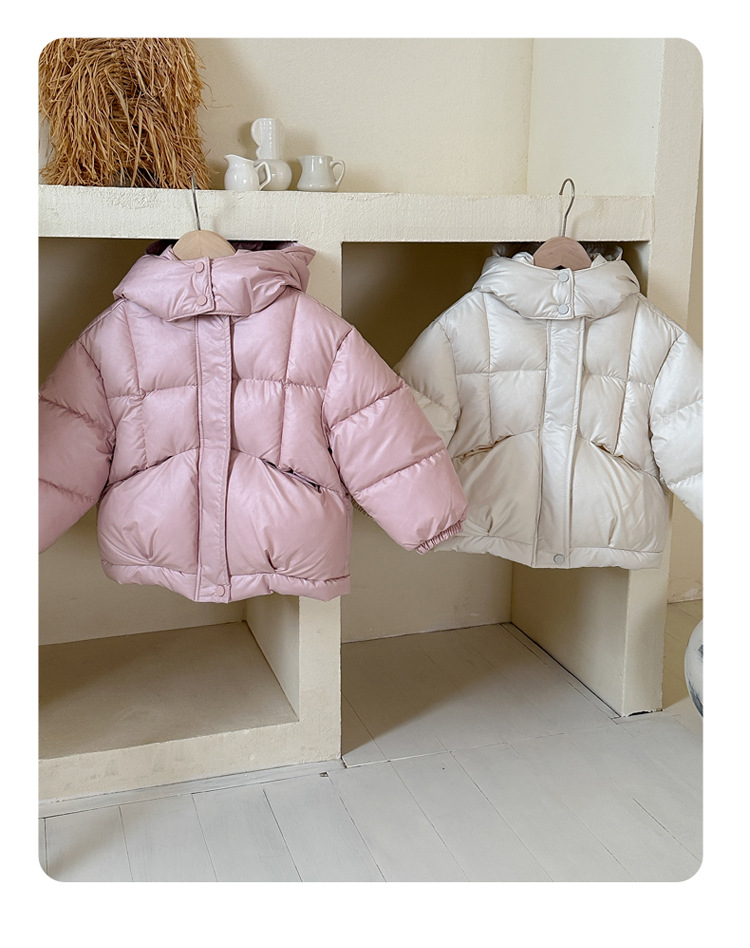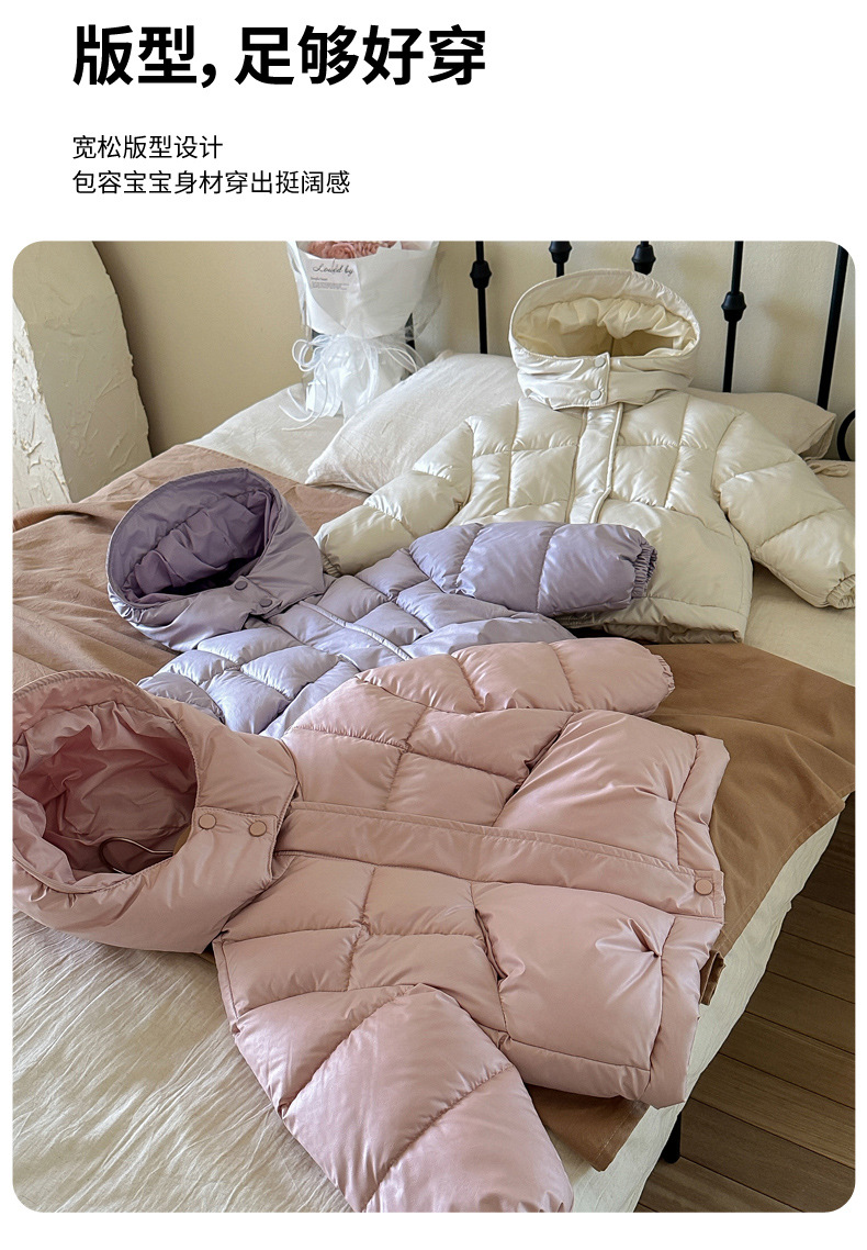 Модная куртка с капюшоном для девочек постарше 2025 Корейский стиль Модное зимнее теплое толстое хлопковое пальто для экспорта