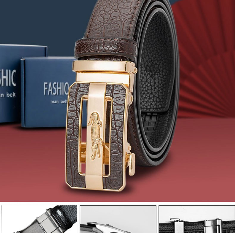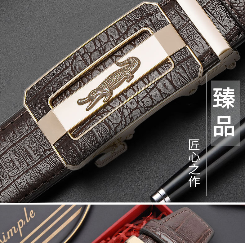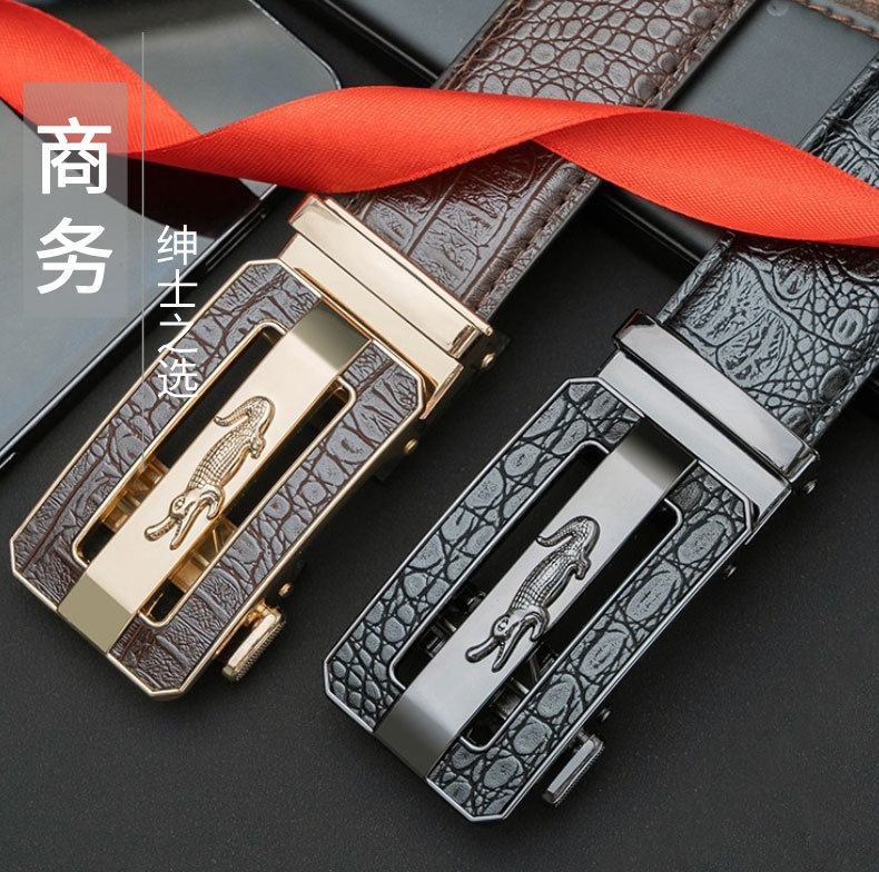 Мужской ремень с автоматической пряжкой и крокодиловым узором, модный универсальный деловой ремень для молодежи и взрослых