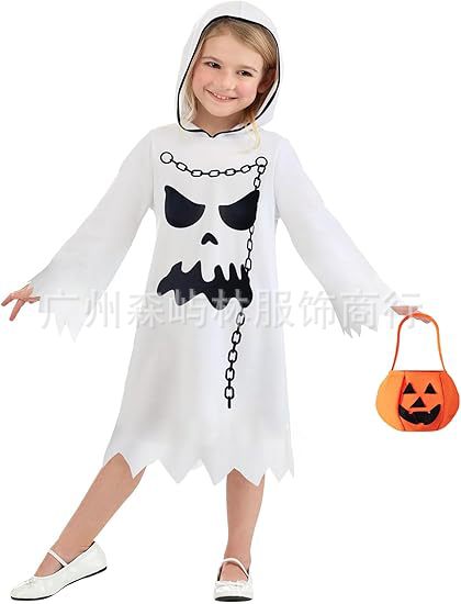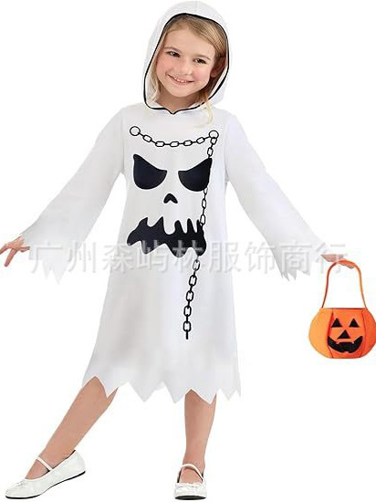 Новый европейский и американский детский костюм призрака на Хэллоуин, детская сумка-тыква, заостренное детское платье с капюшоном