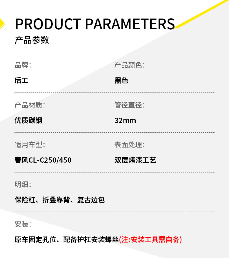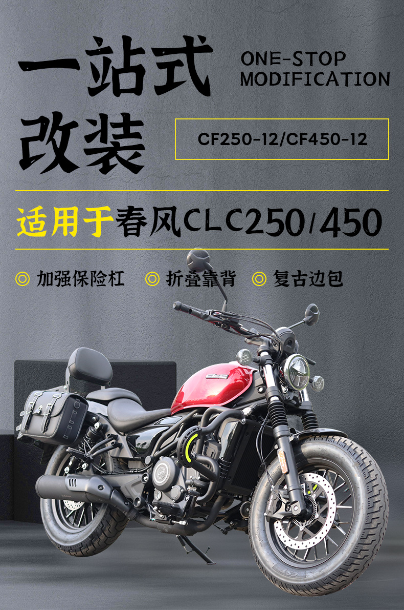 Подходит для Chunfeng 450CLC: защита двигателя, автоматическая коробка передач AMT, боковая сумка, бампер CLC250, складная спинка, модификация полки.