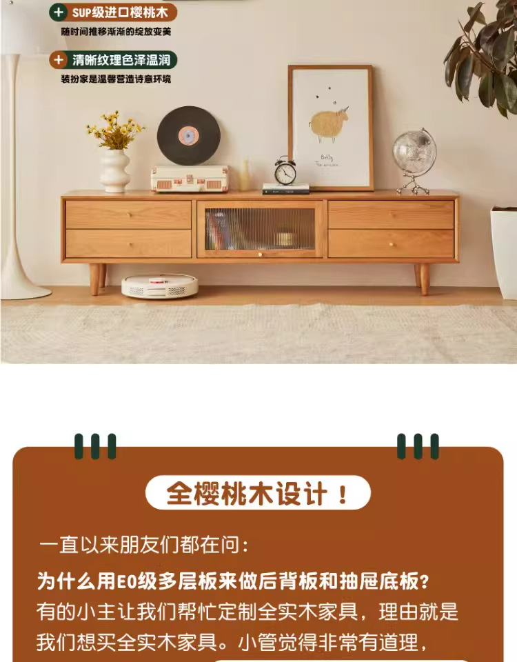 Гостиная, шкаф для телевизора из цельного дерева, журнальный столик из чистого вишневого дерева в скандинавском стиле, комбинированный шкаф для телевизора, аудиовизуальный шкаф для небольшой квартиры, напольный шкаф из цельного дерева