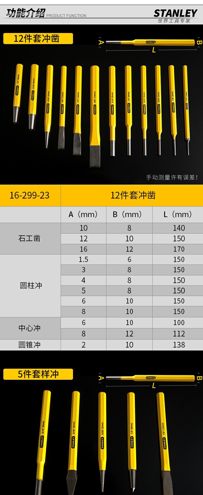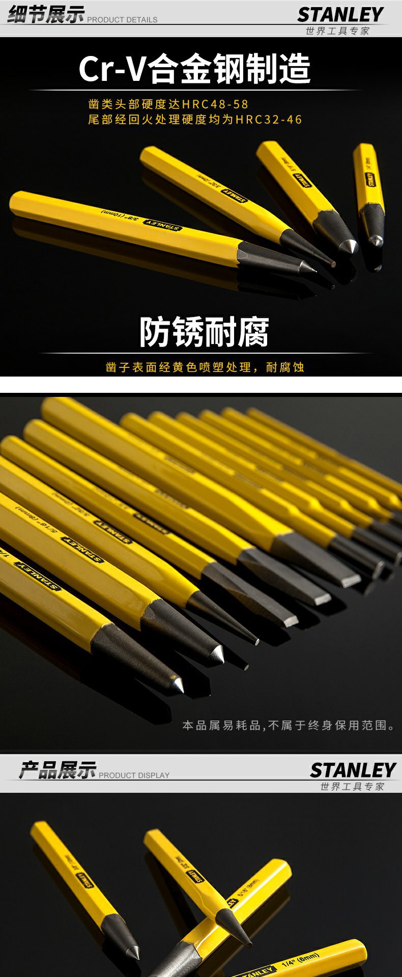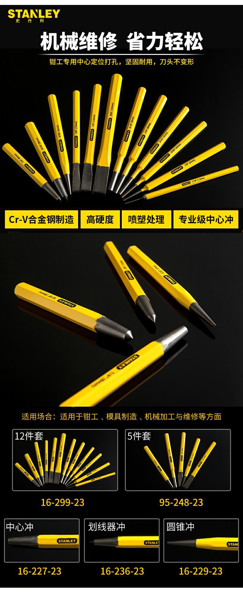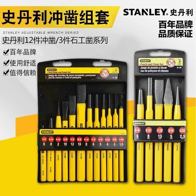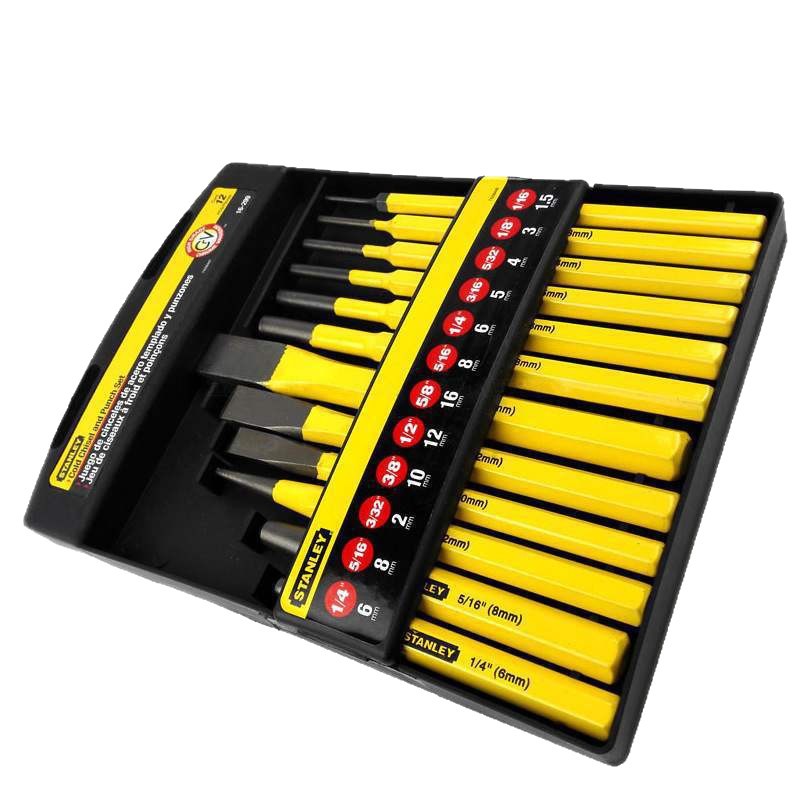 Набор зубил Stanley из 12 предметов: цилиндрические зубила, плоские зубила, каменные зубила, конические зубила, центральные зубила 16-299-23.