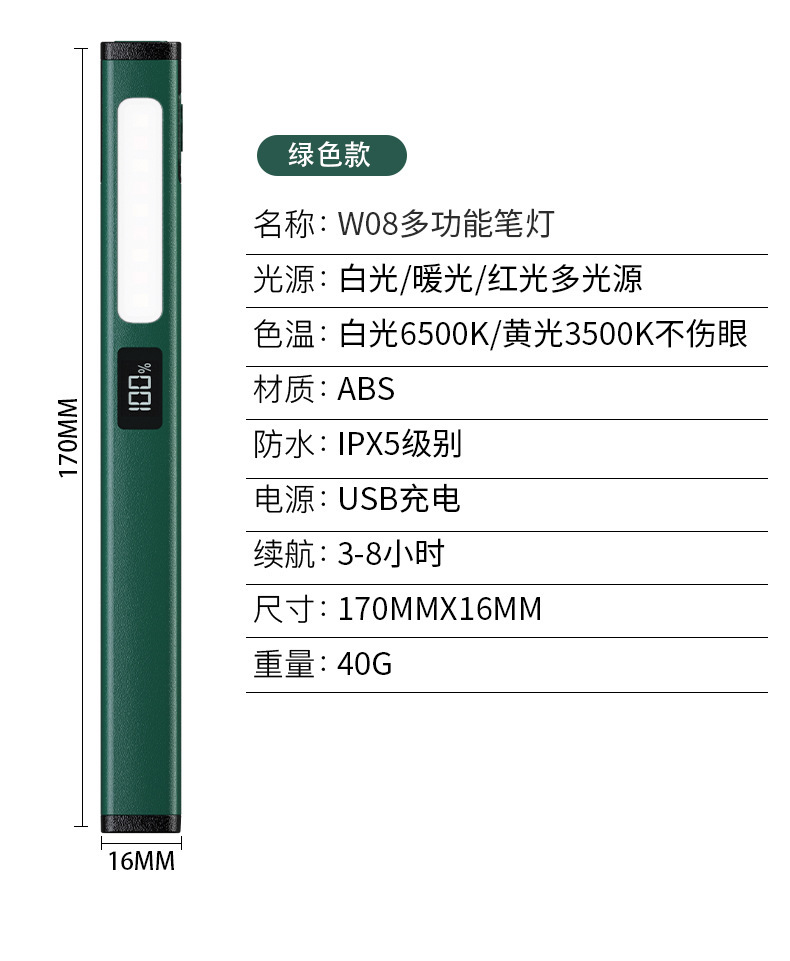 [W08-Серый светильник для ручки] Боковой светильник COB + прожектор + магнитное всасывание + дисплей мощности + зарядка типа C; [W08-Военный зеленый светильник-ручка] Боковой фонарь COB + прожектор + магнитное всасывание + дисплей мощности + зарядка типа C; [W09-черная ручка] Боковой светильник COB + прожектор + магнитное всасывание + дисплей мощности + 360 ° Складная + измерительная линейка + зарядка Type-C