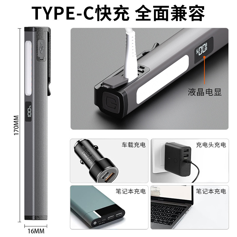 Трансграничный светодиодный фонарик, перезаряжаемый, сильный магнитный фонарик против падения, стиль кемпинга, автомобильный осмотр, автомобильный светильник, рабочий свет в форме ручки