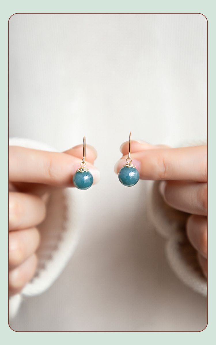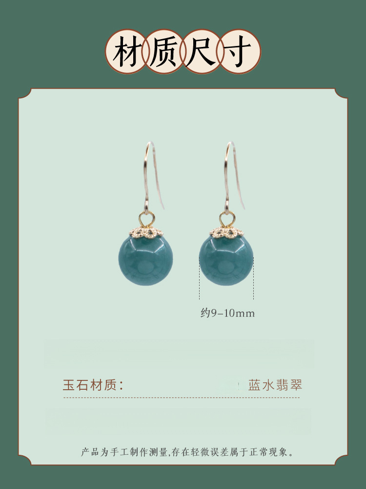 Женские серьги из нефрита, серьги из стерлингового серебра натурального синего цвета, гватемальский материал, крючки для ушей из синего нефрита, ледяные серьги, круглые бусины