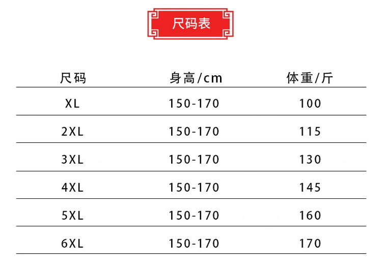 XL (рекомендуется 40-50kg ); 2XL (рекомендуется 50-57.5kg ); 3XL (рекомендуется 57.5-65kg ); 4XL (рекомендуется 65-72.5kg ); 5XL (рекомендуется 72.5-77.5kg ); 6XL (рекомендуется 77.5-85kg )