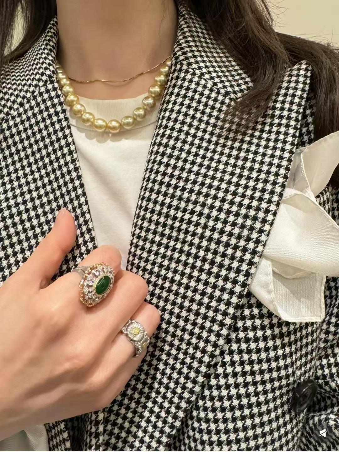 金绿猫眼色泽“月亮彩虹”串链 尺寸:8.8-11.7mm 整体偏水滴形上身更随性 金绿的镜面光泽 光感强烈表皮非常细腻 整体细微瑕疵 真科研 皮层超厚2.5mm