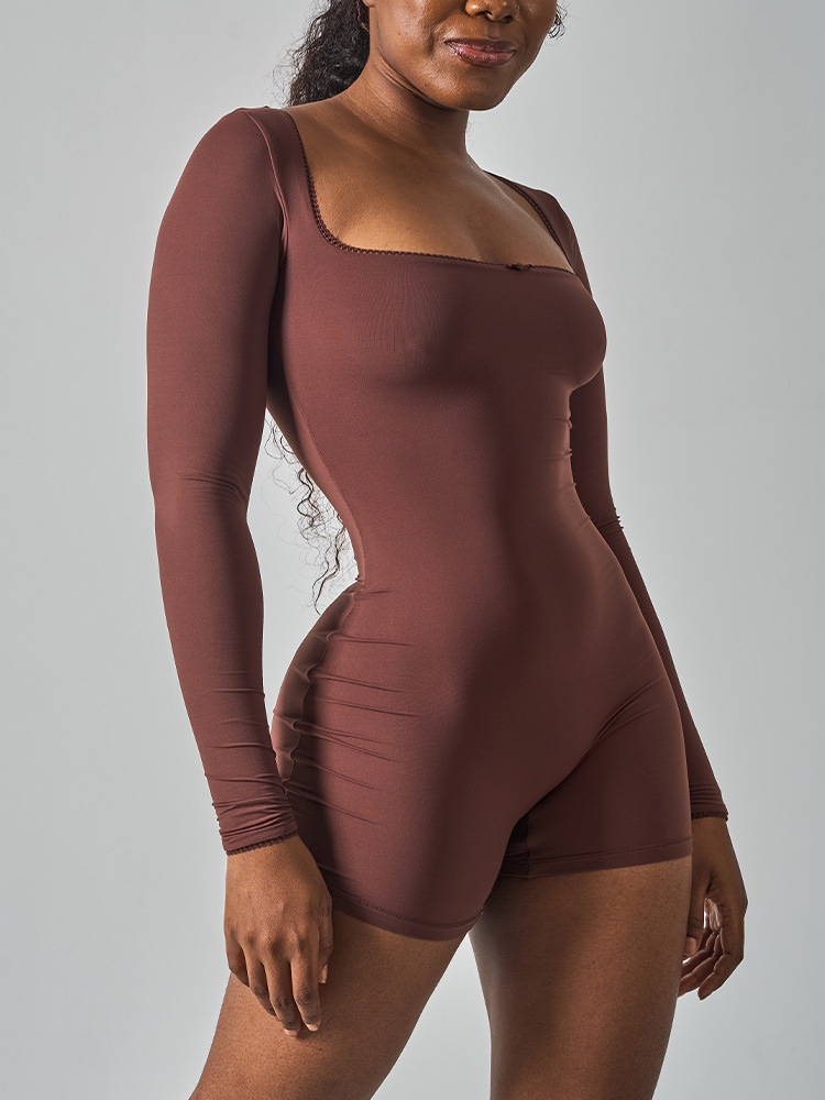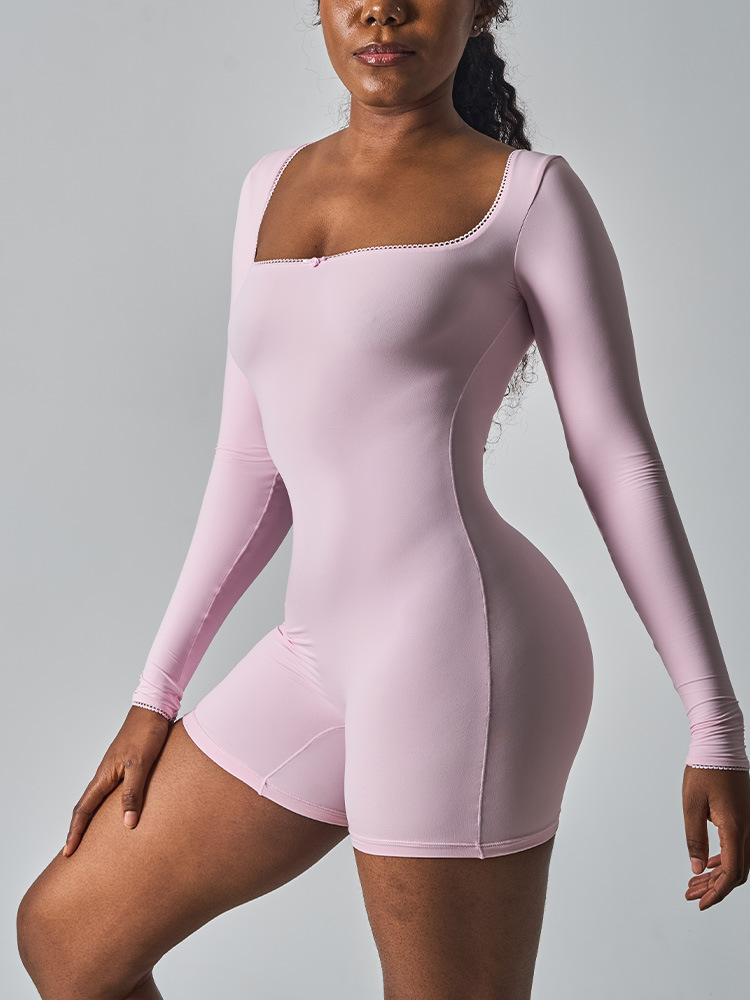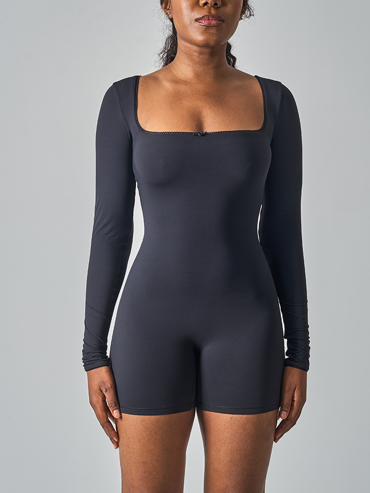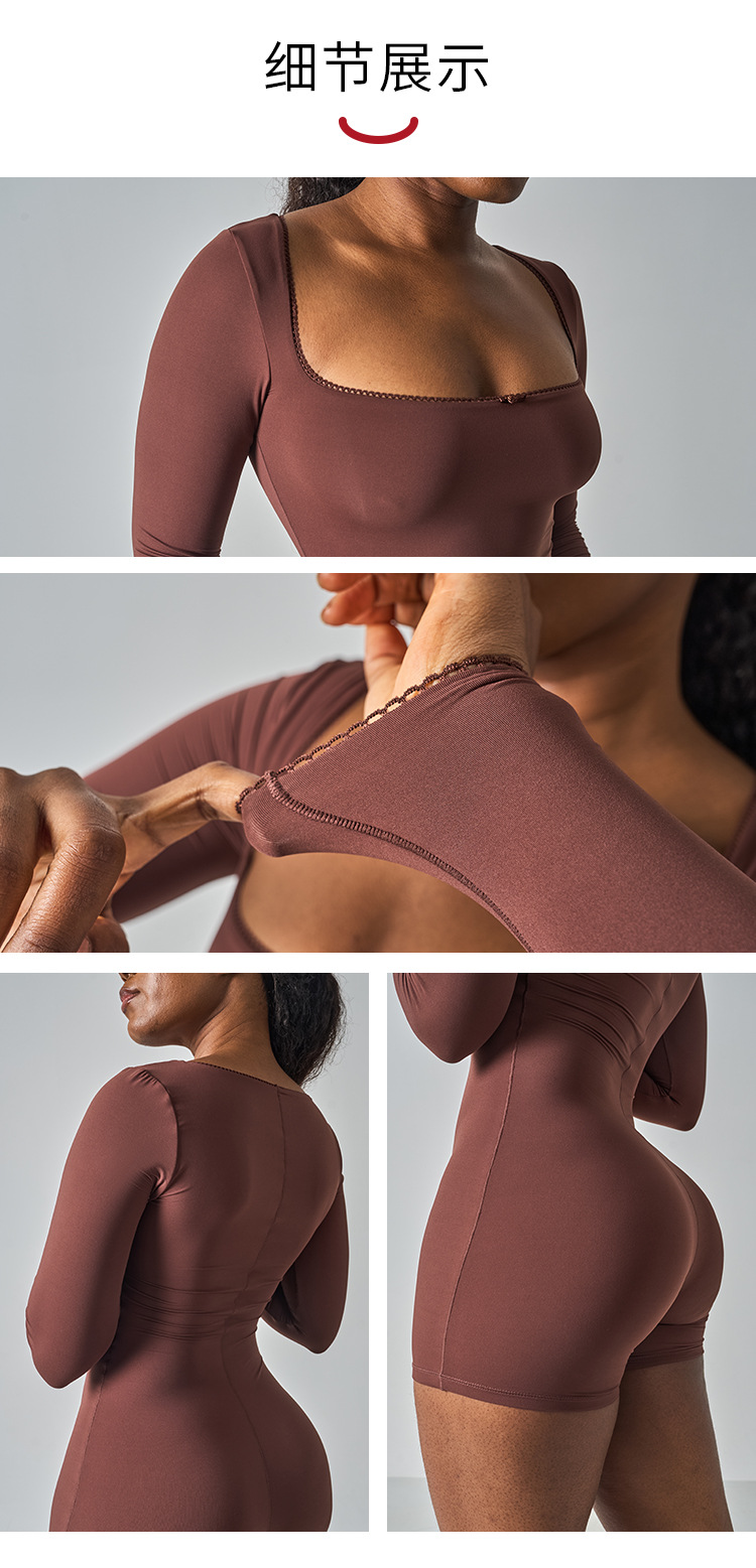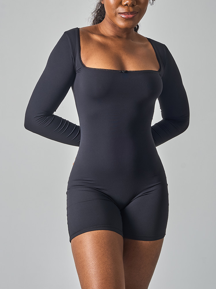 Кружевной боди с длинными рукавами, кросс-бордерный экспорт, кружевной обтягивающий эластичный комбинезон с квадратным вырезом