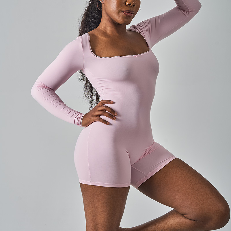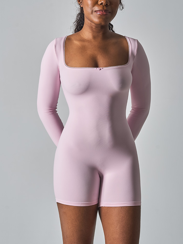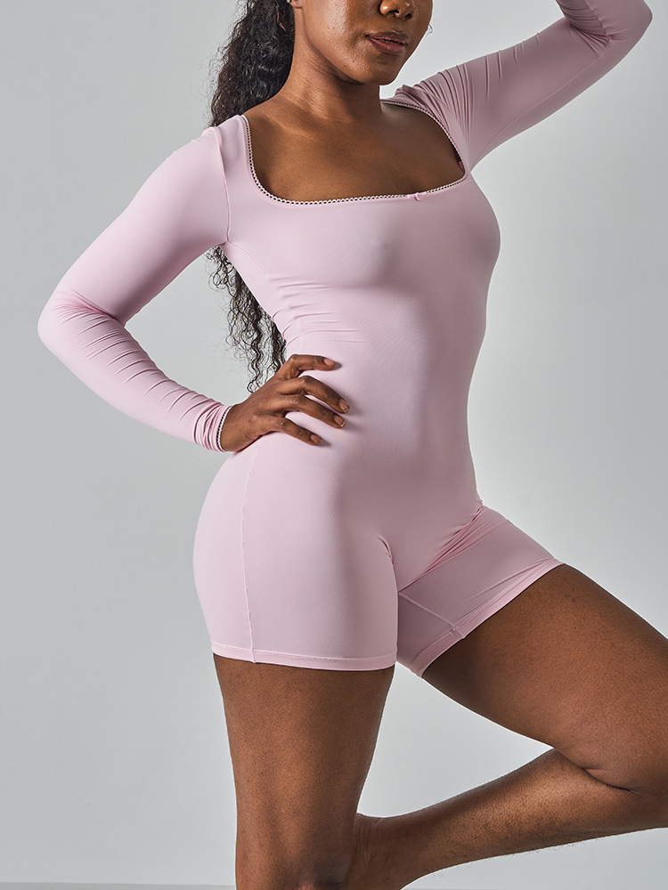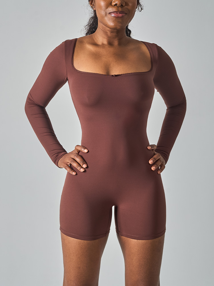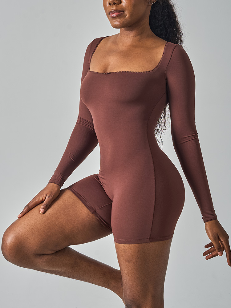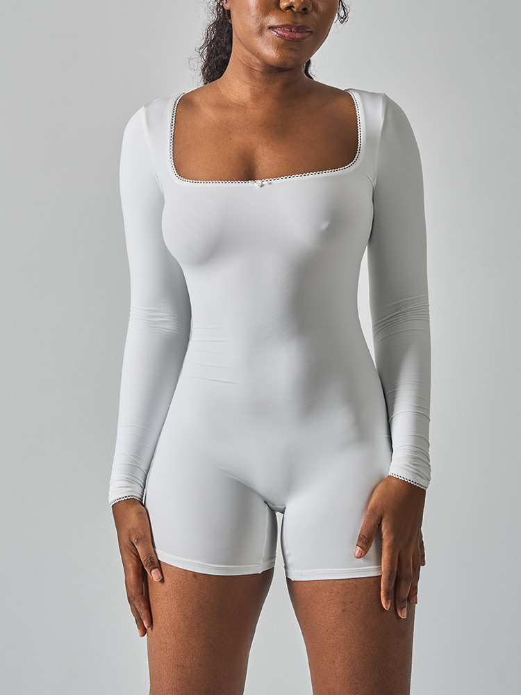 Кружевной боди с длинными рукавами, кросс-бордерный экспорт, кружевной обтягивающий эластичный комбинезон с квадратным вырезом