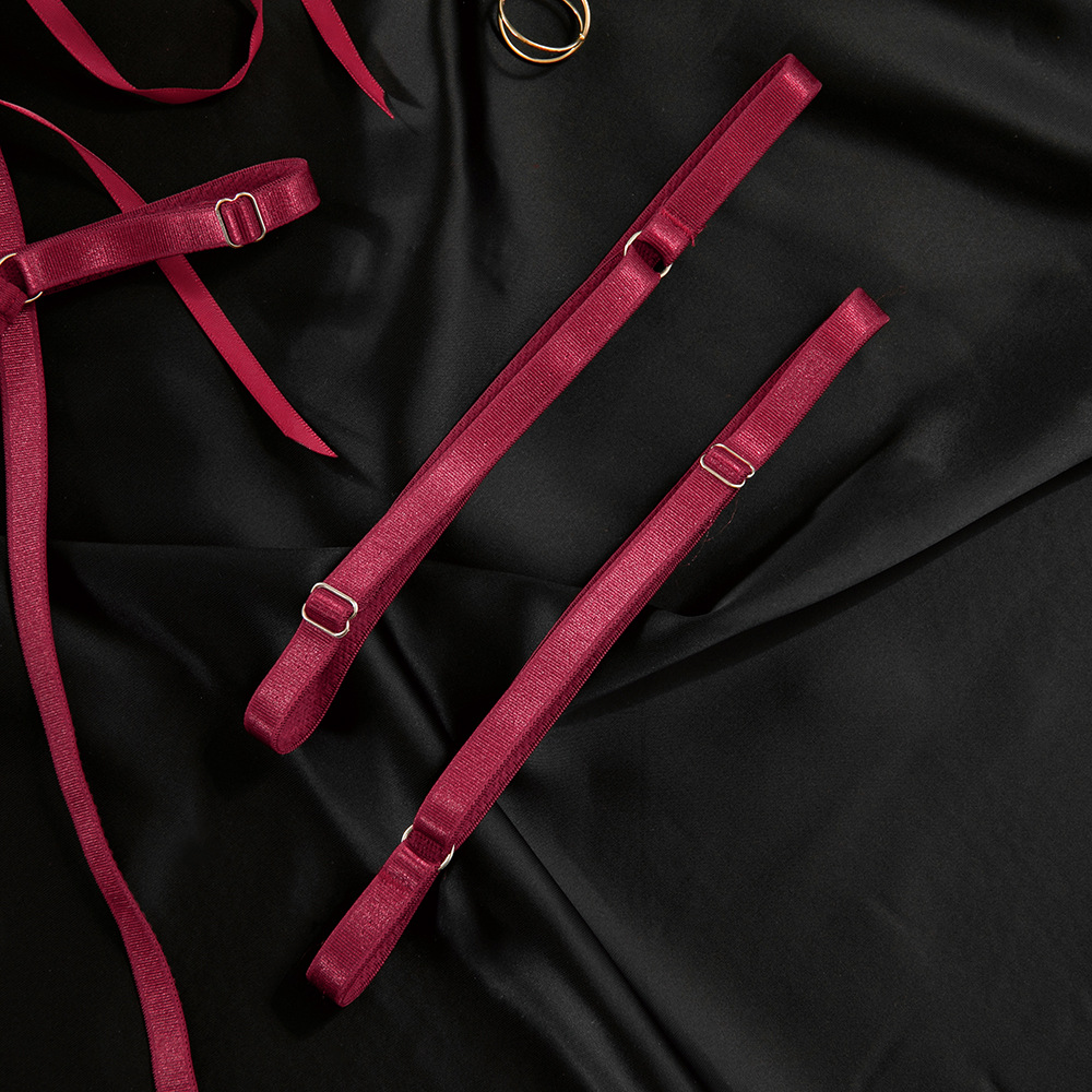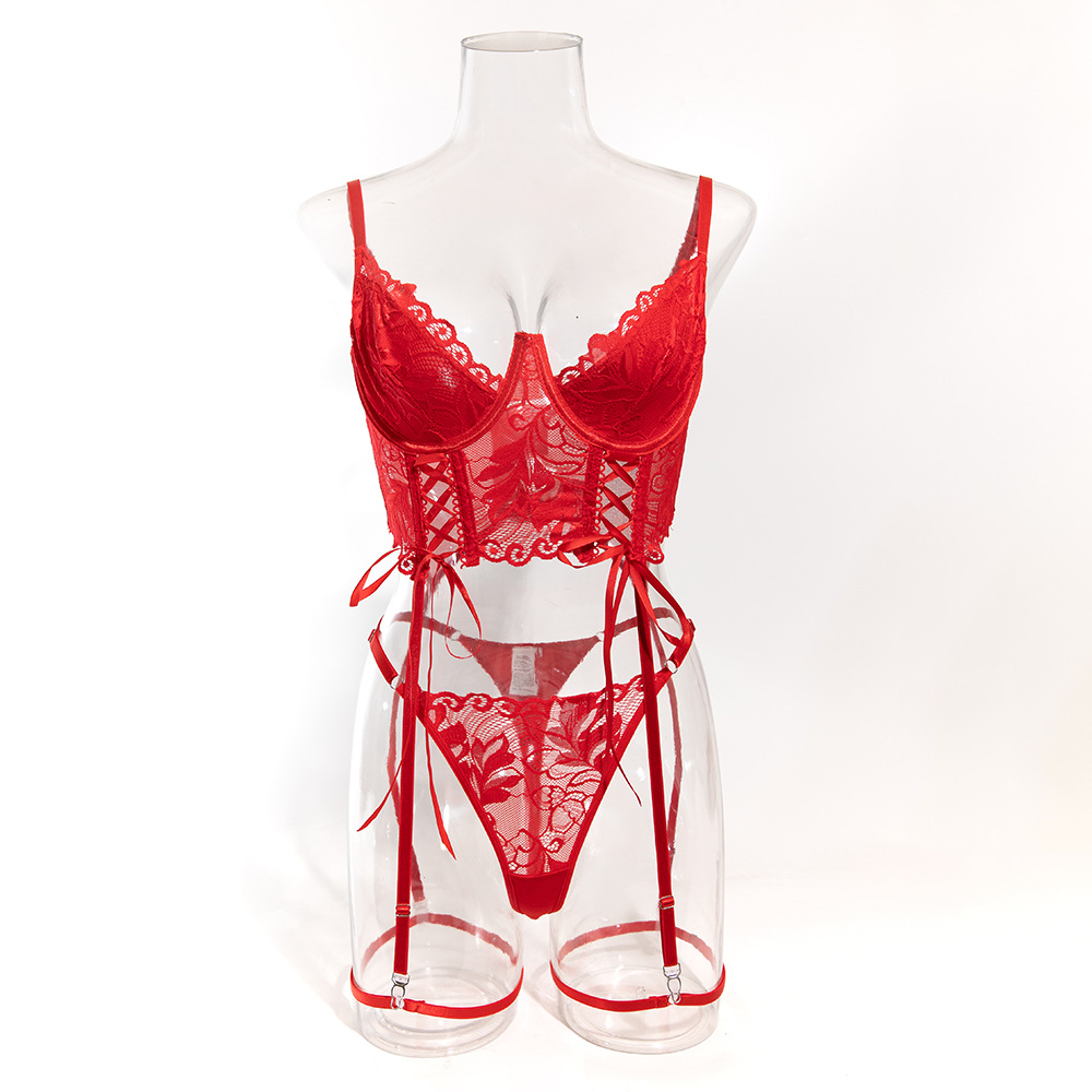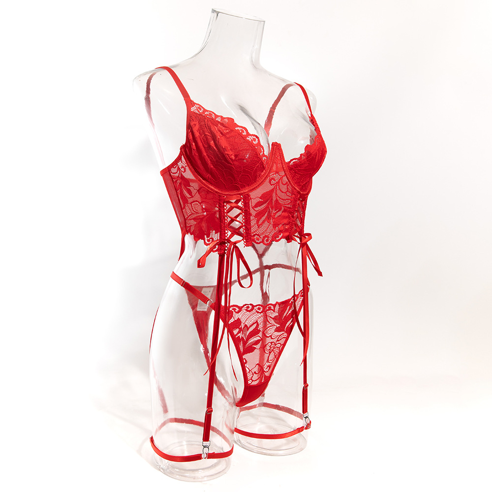 Европейский и американский трансграничный сексуальный однотонный женский комплект с кружевной отделкой на половину тела на косточках, со сборкой на талии и кольцом на ноге.