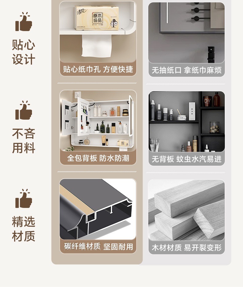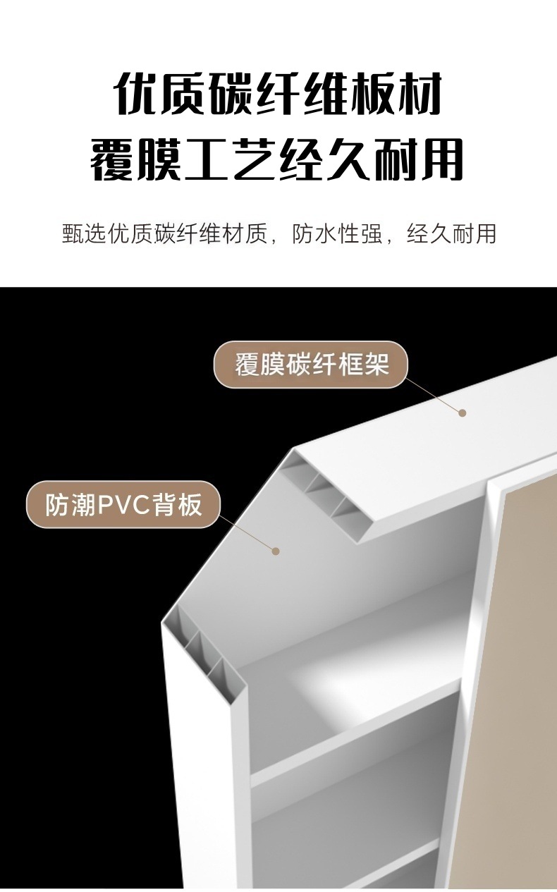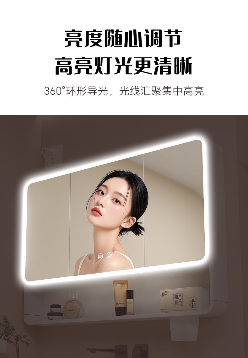 Трансграничная поставка углеродного волокна с закругленными углами, умное зеркало для хранения, зеркальный шкаф, зеркальная коробка, настенное зеркало для домашней ванной комнаты