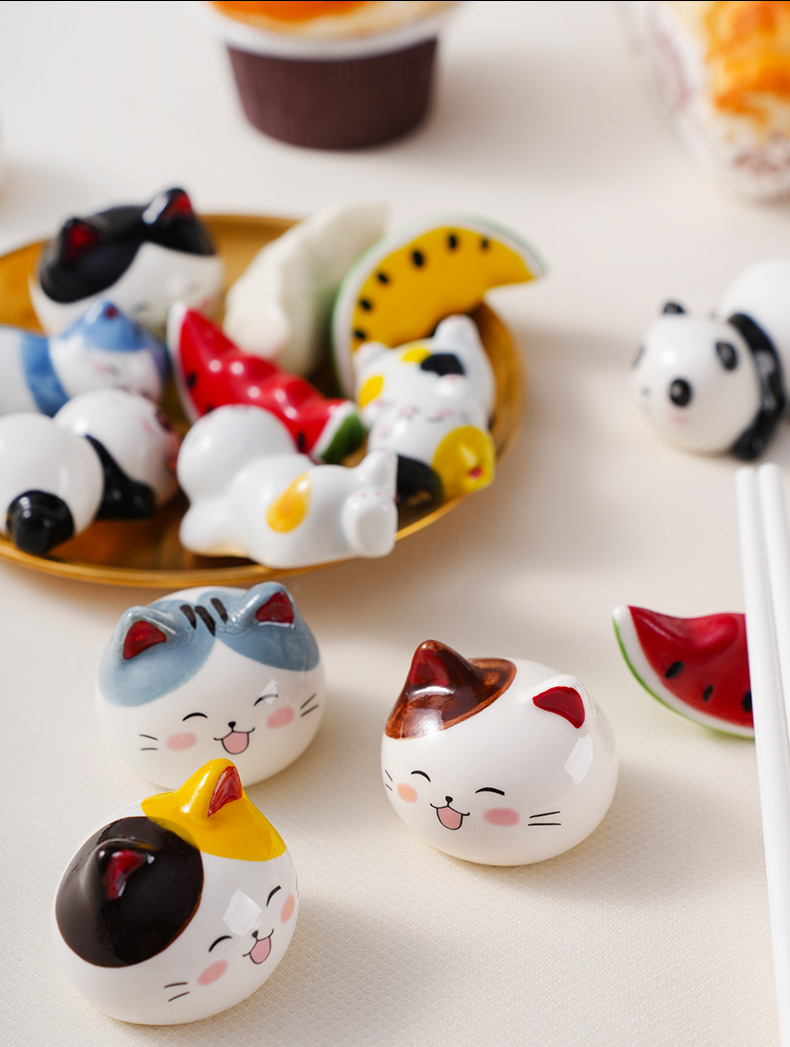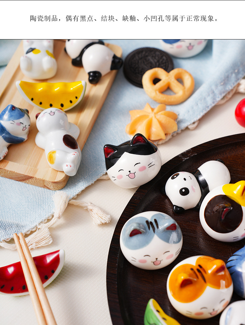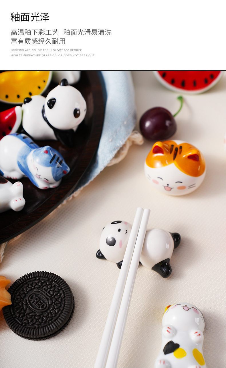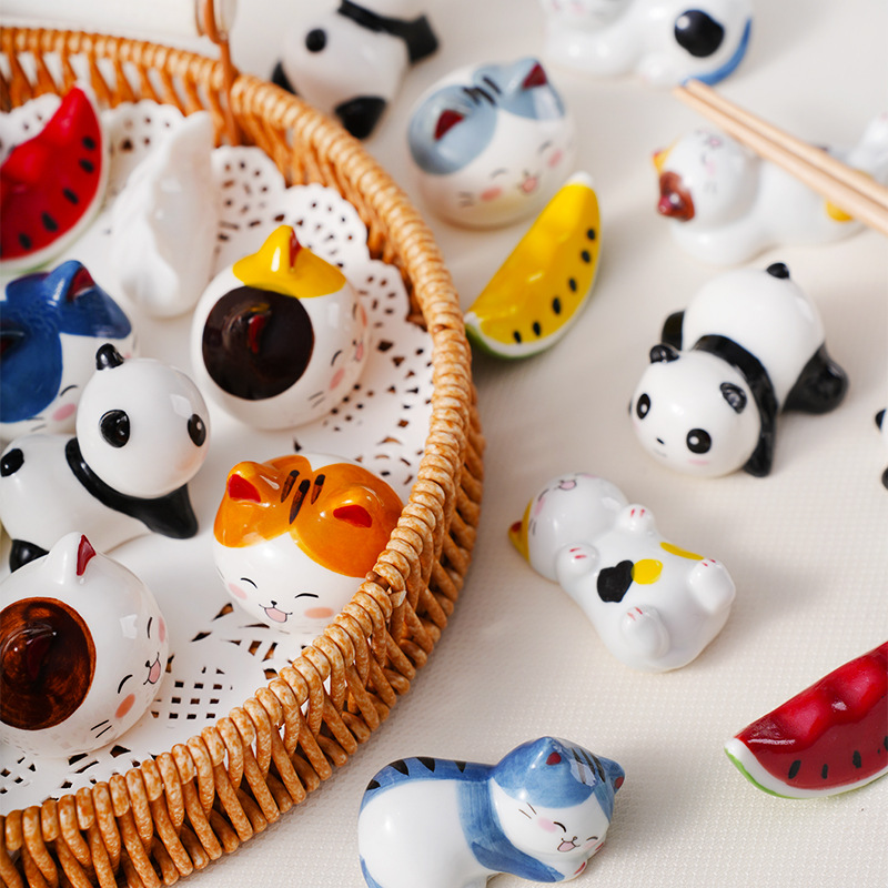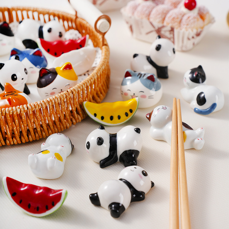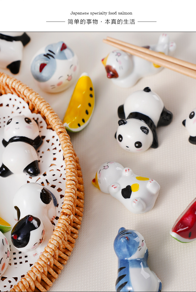 Керамическая подставка для палочек для еды в японском стиле с рисунком животных, фруктов и овощей (панды, арбузы), нескользящая конструкция