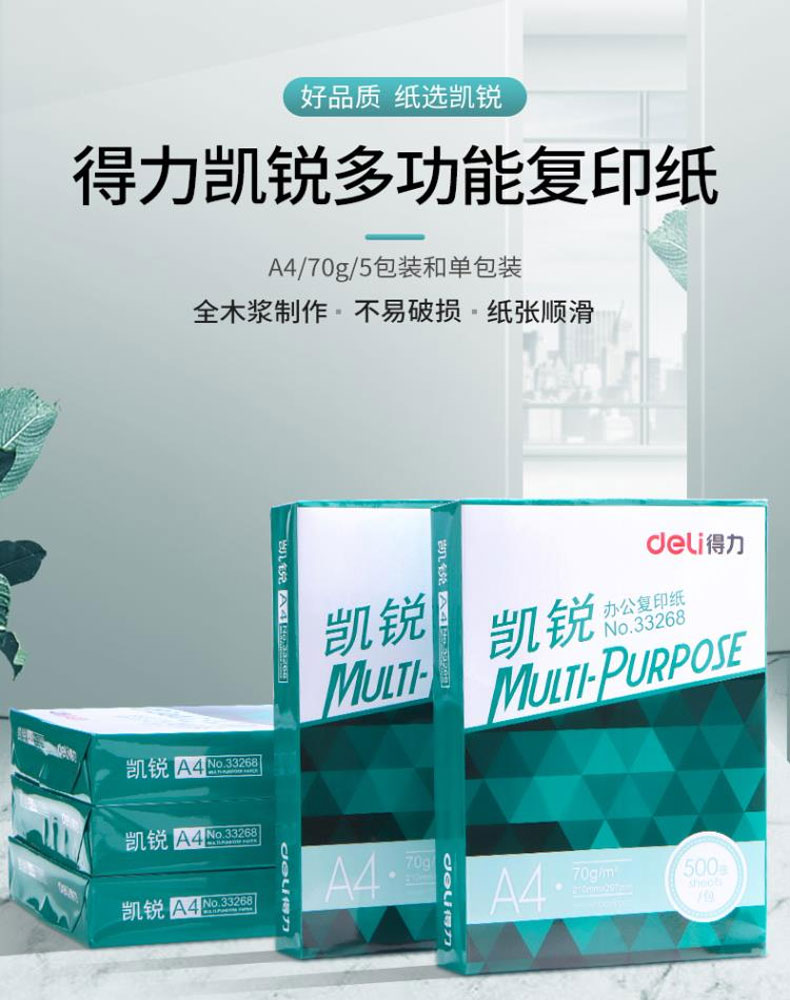 Бумага для печати и копирования Deli A4 70г 80г, одиночная упаковка 500 листов, Jiabo Wood Shang Danube, древесная целлюлоза, офисные принадлежности
