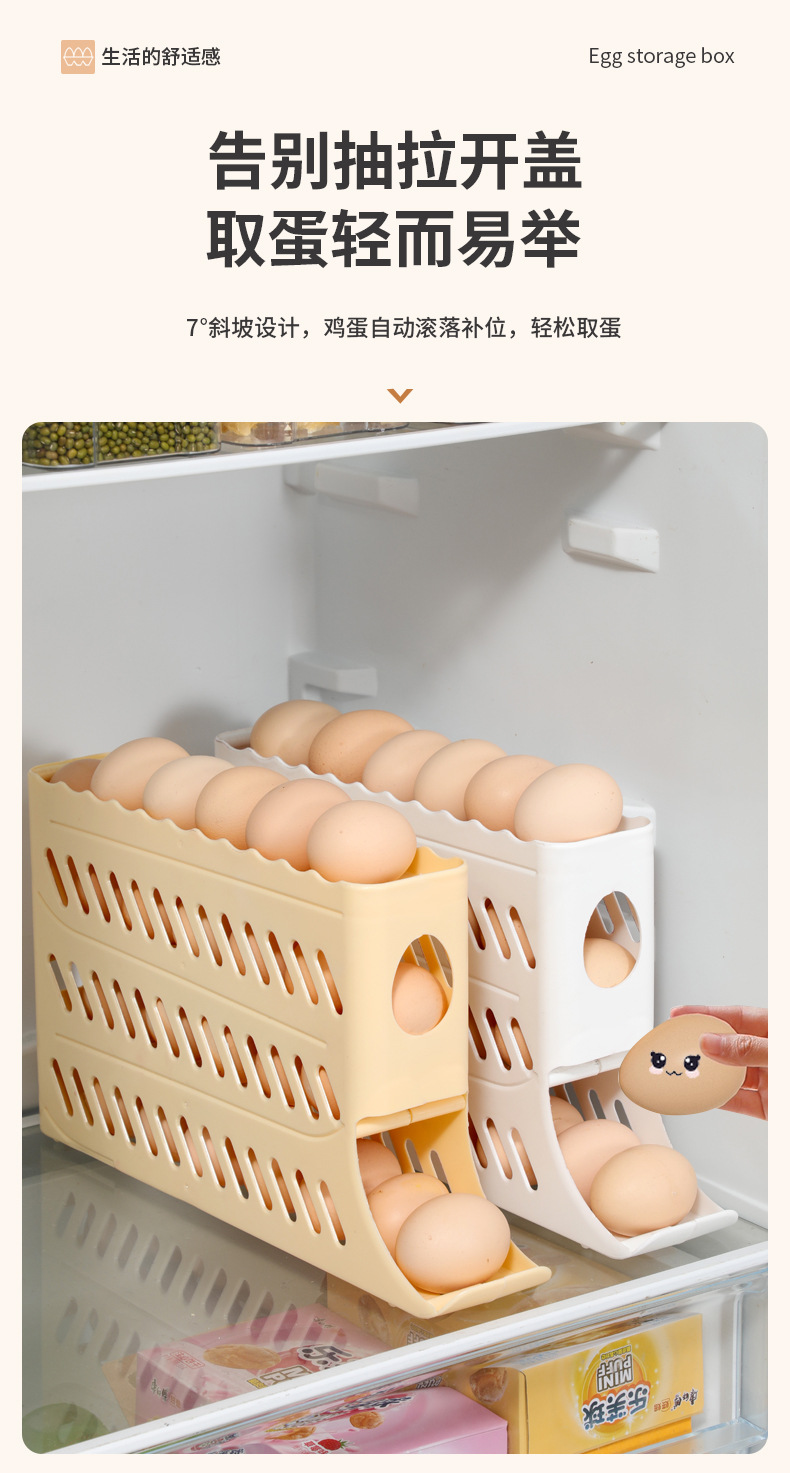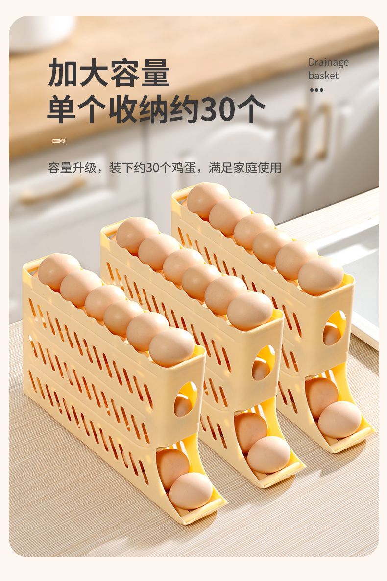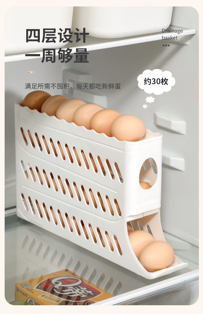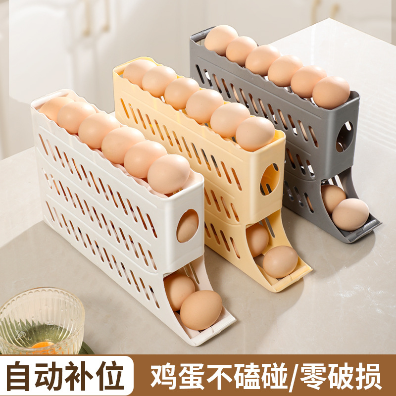 Кросс-бордерный ящик для хранения яиц, четырехслойная выдвижная полка для холодильника, автоматический вращающийся лоток для яиц, антиударный ящик для яиц