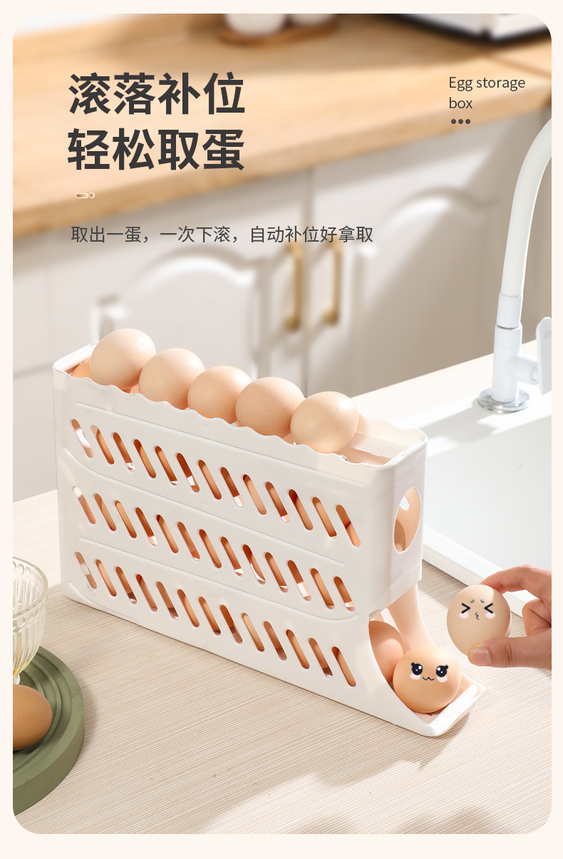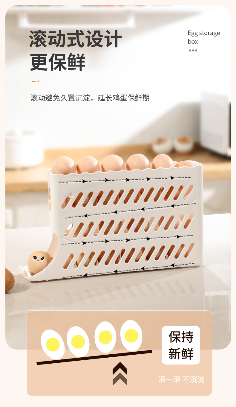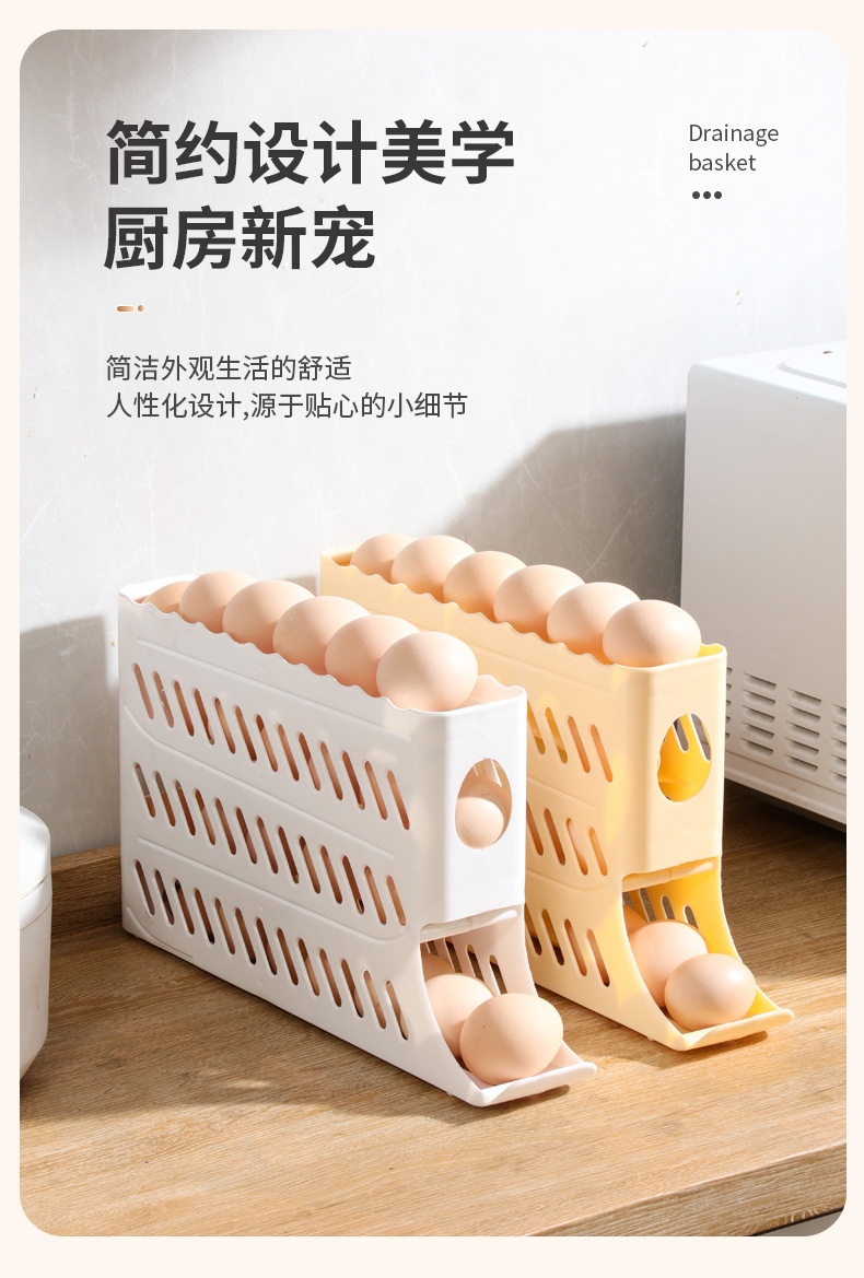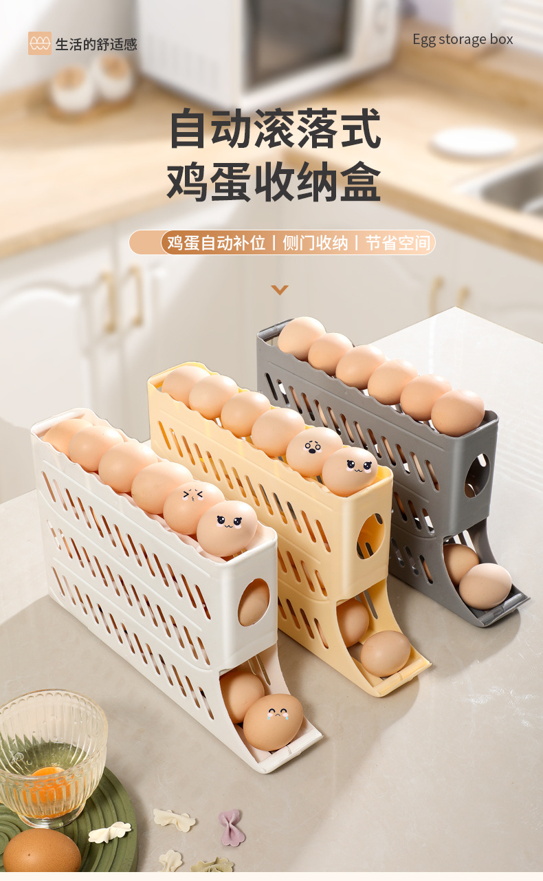 Кросс-бордерный ящик для хранения яиц, четырехслойная выдвижная полка для холодильника, автоматический вращающийся лоток для яиц, антиударный ящик для яиц