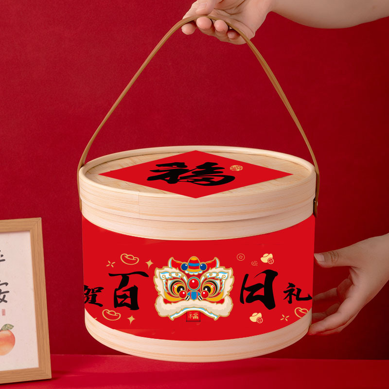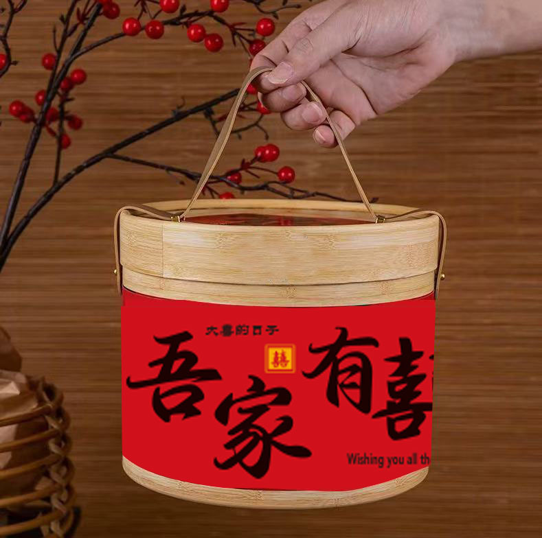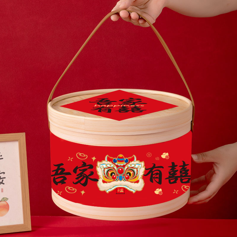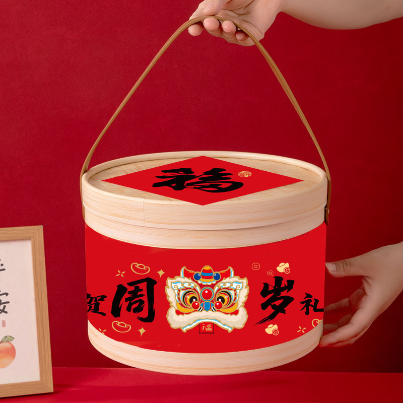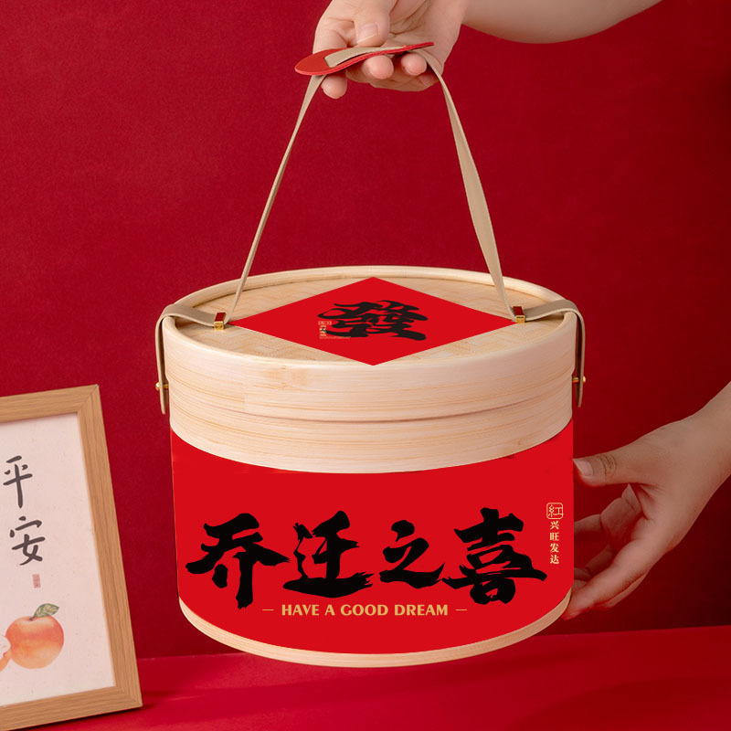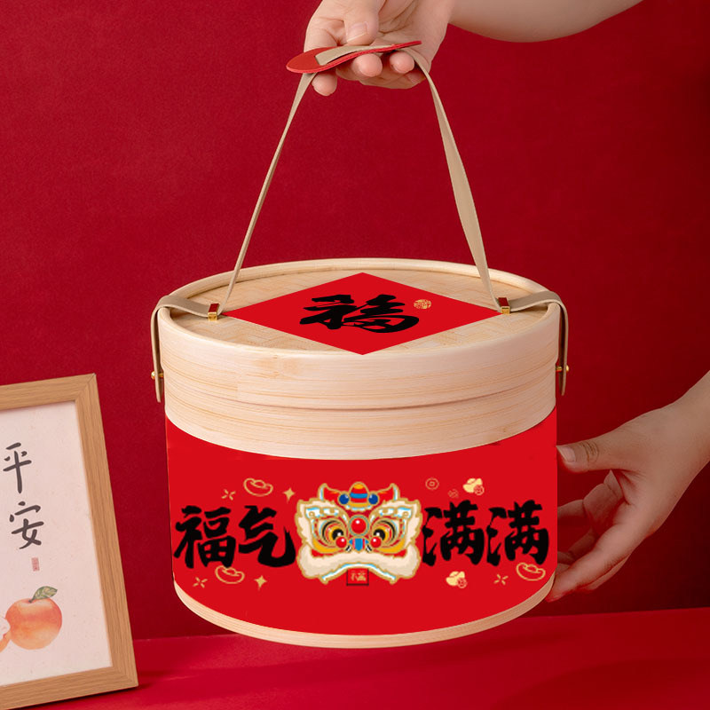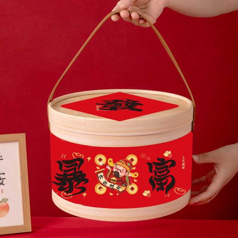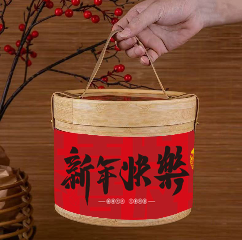 Подарочный набор новогодних закусок для процветания и достатка, на год, на первый месяц, пустая цилиндрическая подарочная коробка с имитацией бамбука, упаковка для подарков.