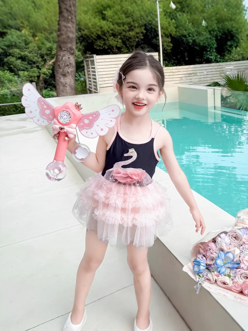 Детский купальник-комбинезон для девочек, лето 2025, новинка, с подвязками, юбка-принцесса, модный, тонкий