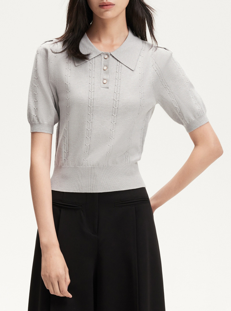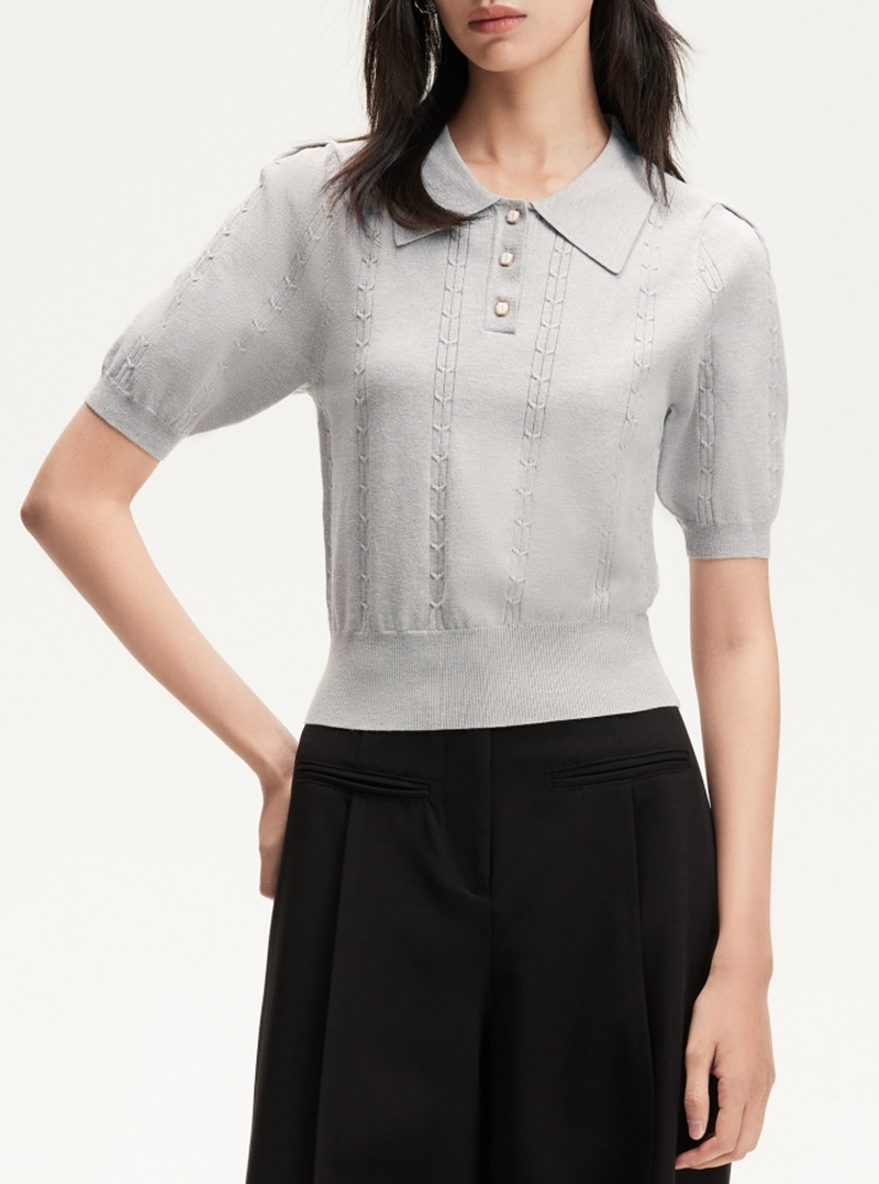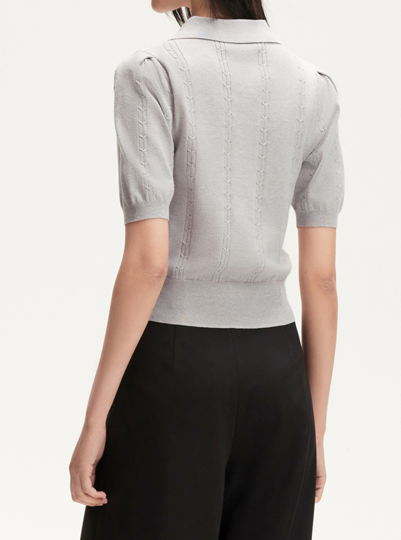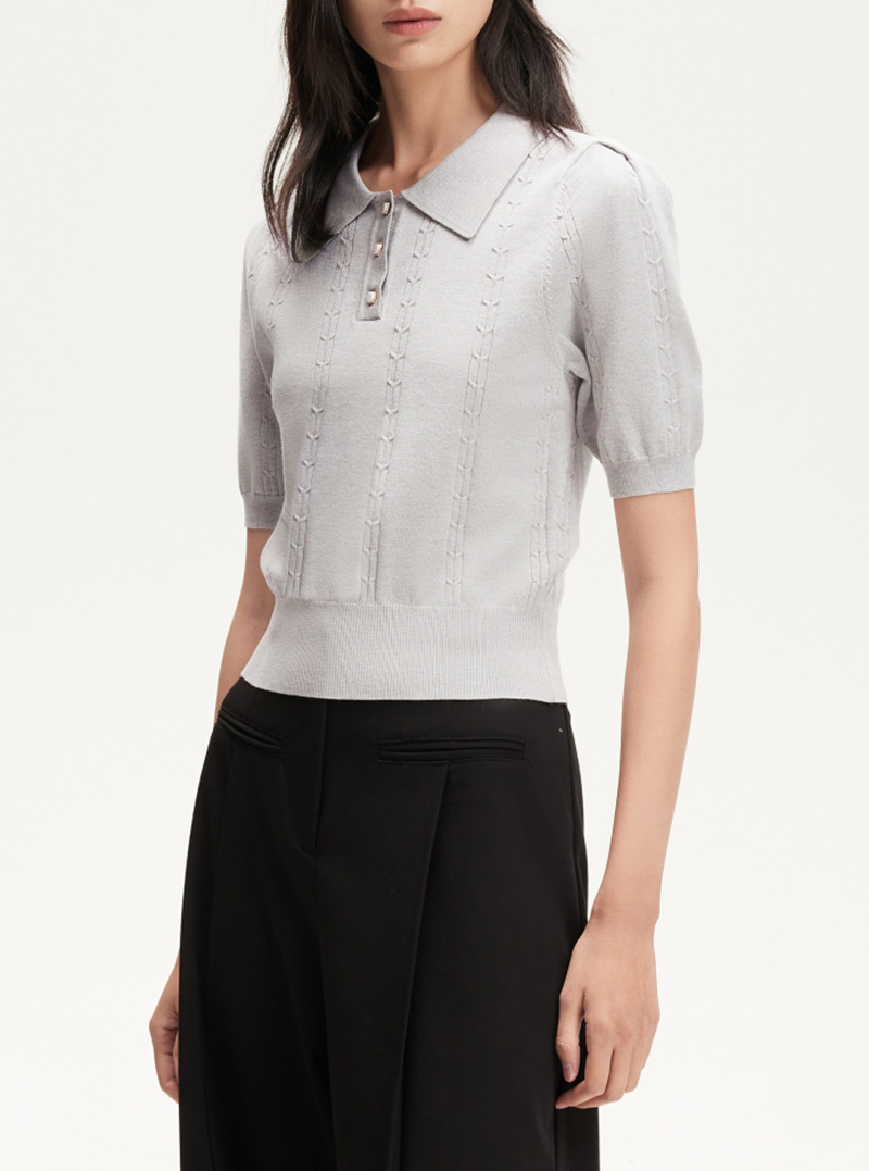 Женская удобная летняя футболка с пуговицами и пышными рукавами с лацканами. Индивидуальная обработка. Дизайн узора шерстяного свитера Dalang по изображению.
