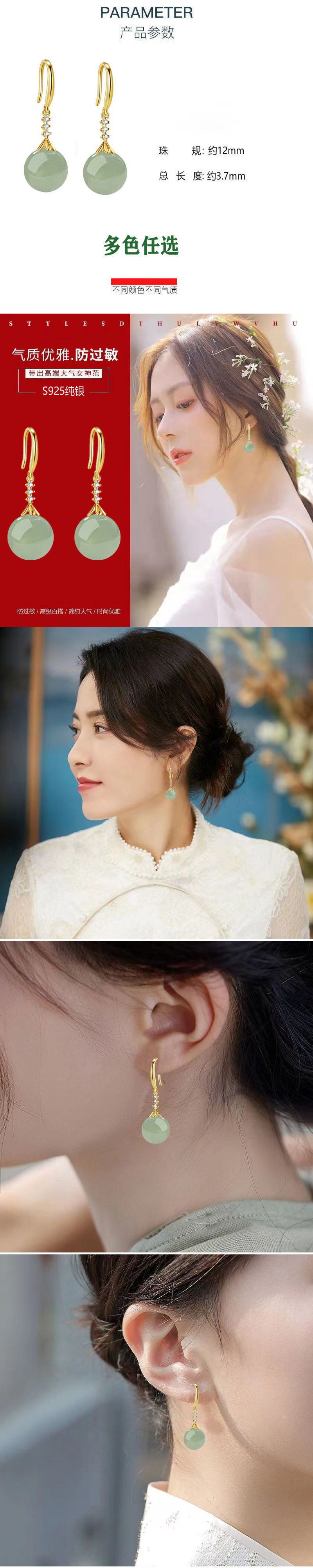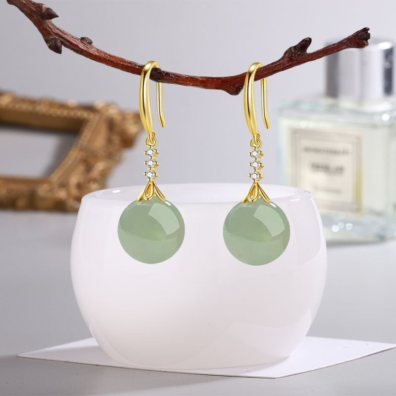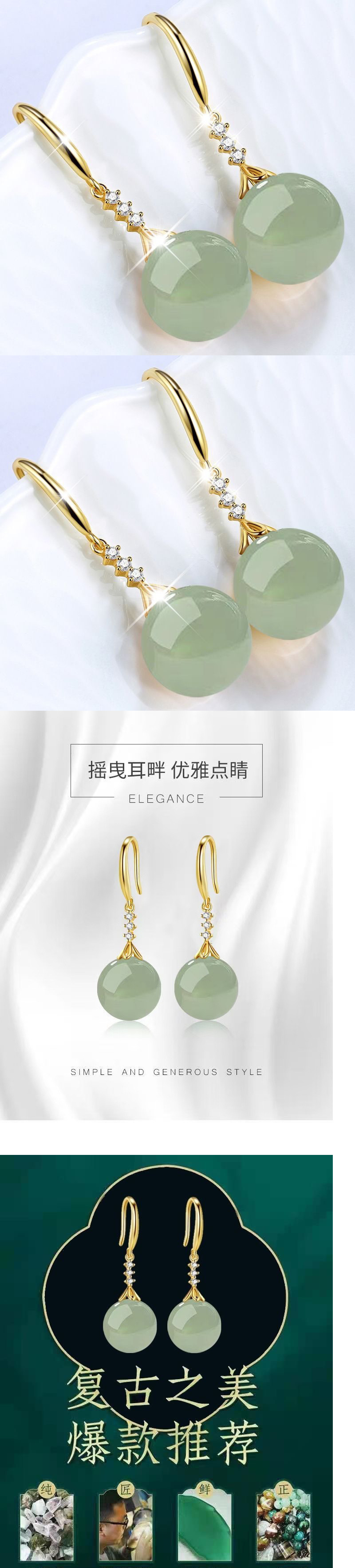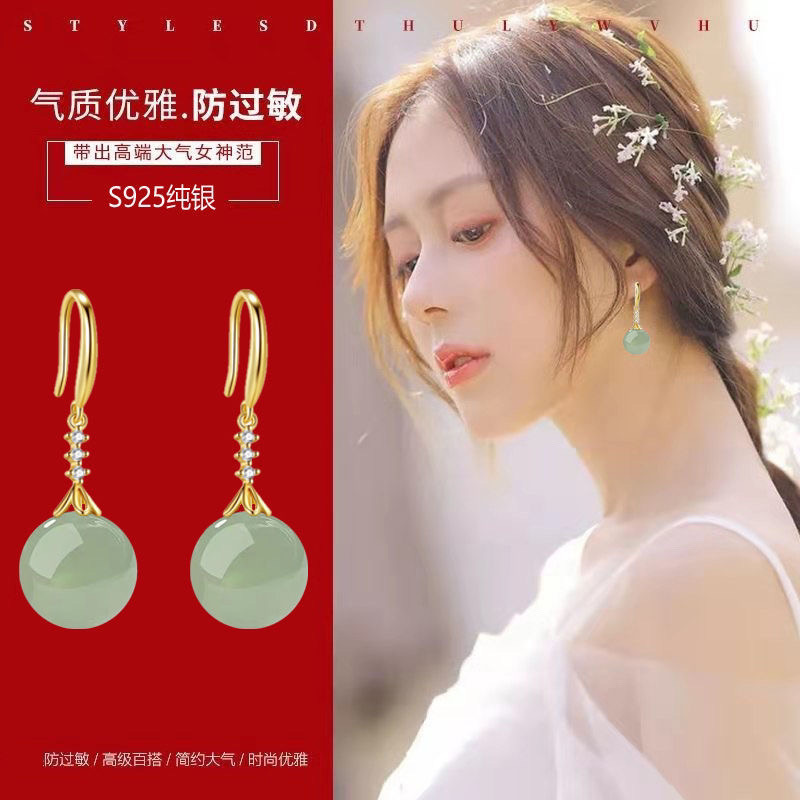 Серьги из стерлингового серебра 999 пробы с ретро зеленым сапфиром и нефритом Хэтян для женщин, длинные серьги с цирконом и халцедоном, серьги-крючки с драгоценными камнями