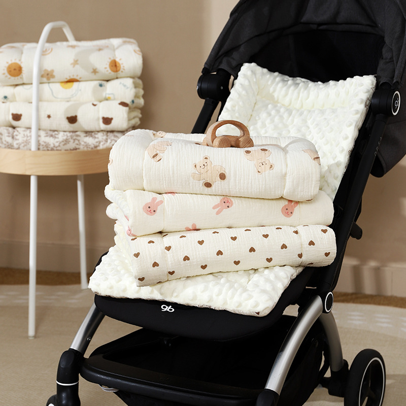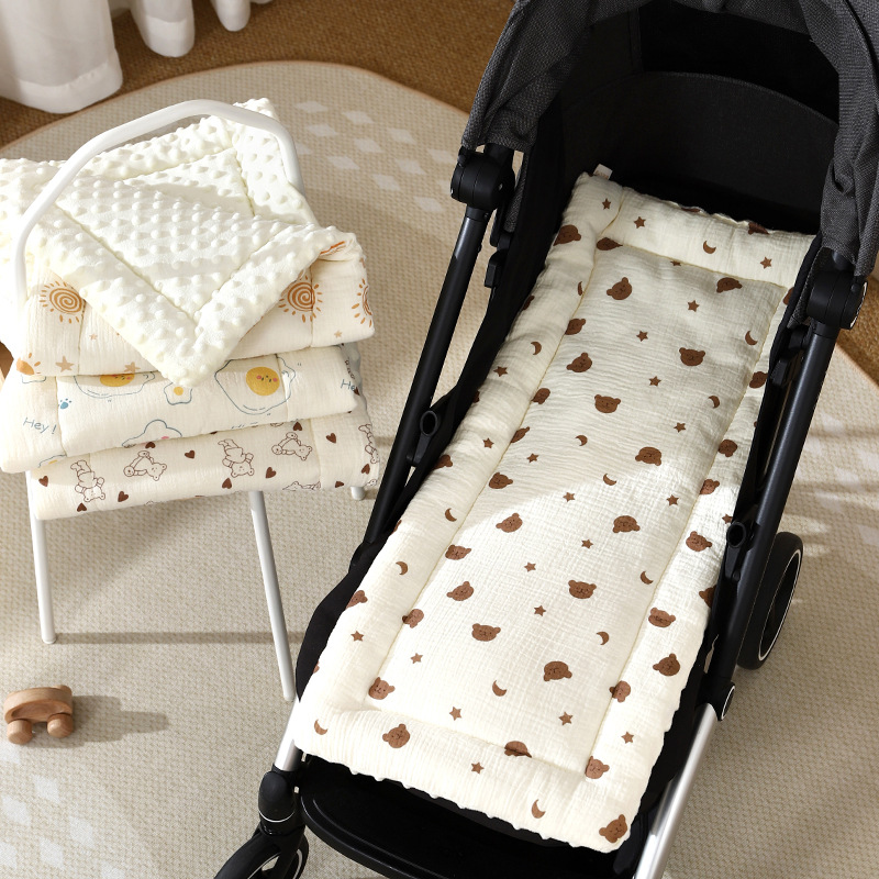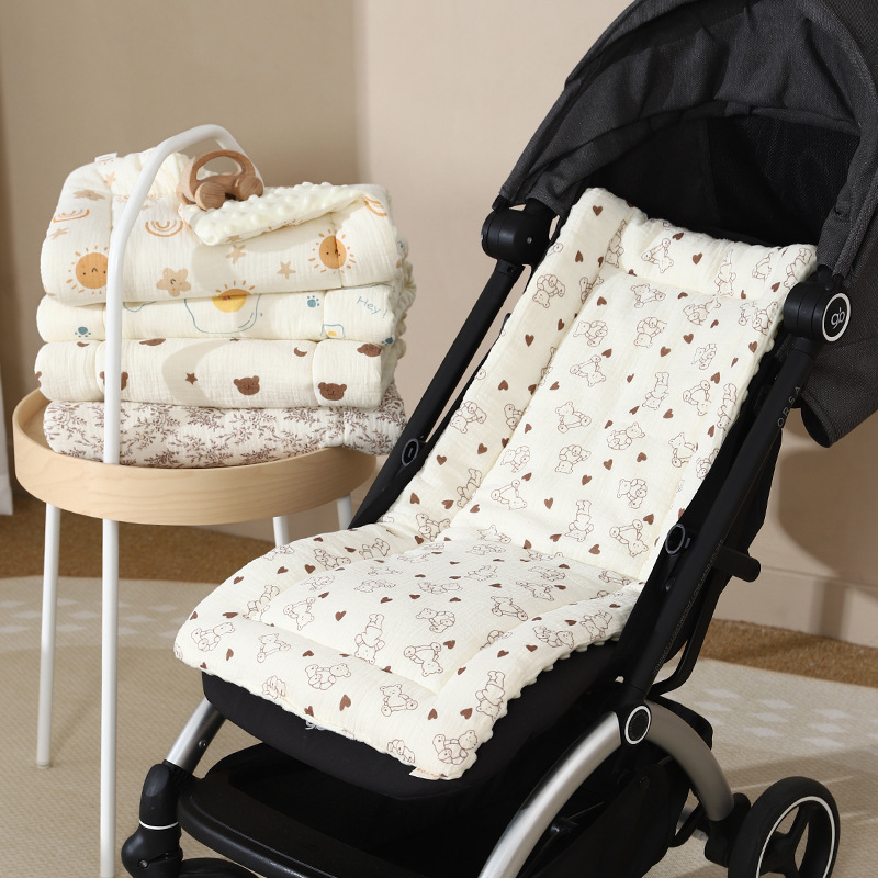 Коврик для детской коляски, марля из чистого хлопка, мягкий бархатный стеганый коврик для коляски, двусторонняя подушка для детского сиденья для прогулок ребенка