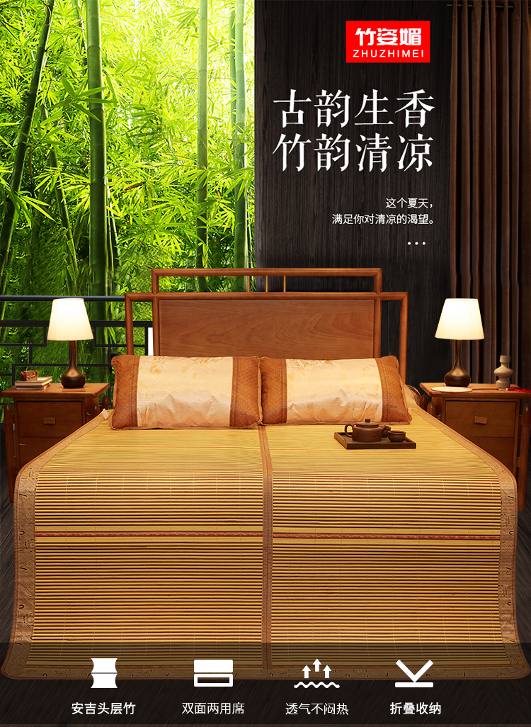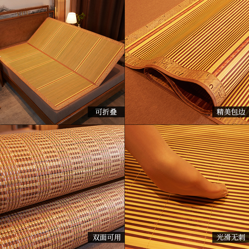 Складной коврик двойного назначения из ледяного шелка для лета и зимы, подходит для студенческих общежитий, соломенный коврик для одного человека, двусторонний коврик, бамбуковый коврик.