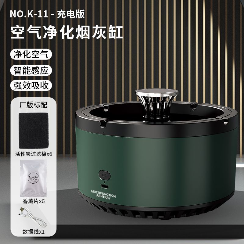 Умная сенсорная пепельница для дома и автомобиля, дезодорирующая, креативная и модная, подходит для гостиной и спальни, в стиле ретро, зеленая, против летучей золы.