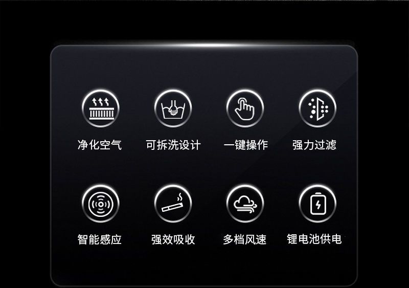 Одно нажатие, чтобы запустить полностью автоматическую промывку с вращением/мощное поглощение золы.; Флагманская модель: курение за одну секунду/антибактериальная и дезодорирующая с ароматерапией.; Эксклюзивная версия, высокая мощность, мощная и быстрая дезодорация.; Верхняя версия, автономная, социальная модель