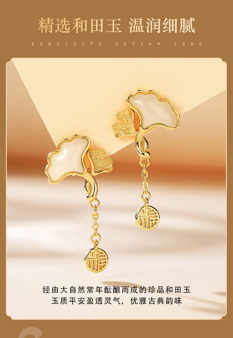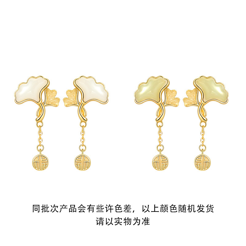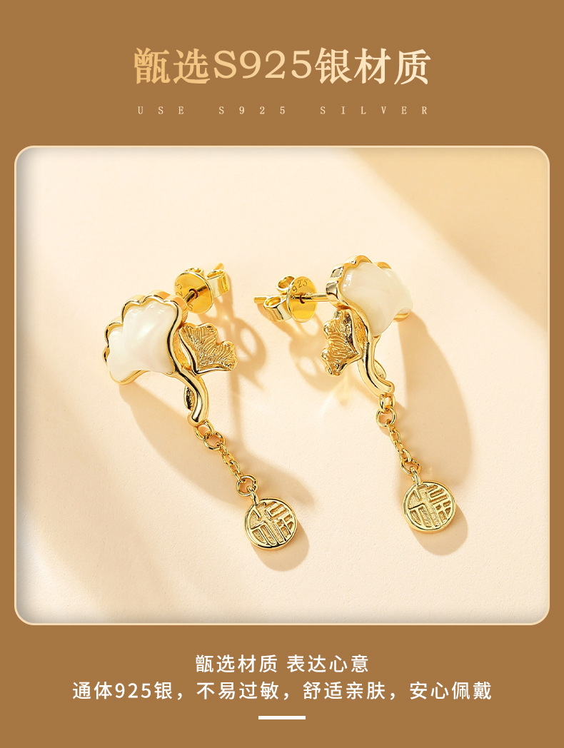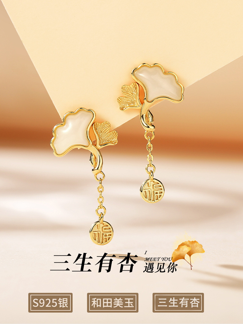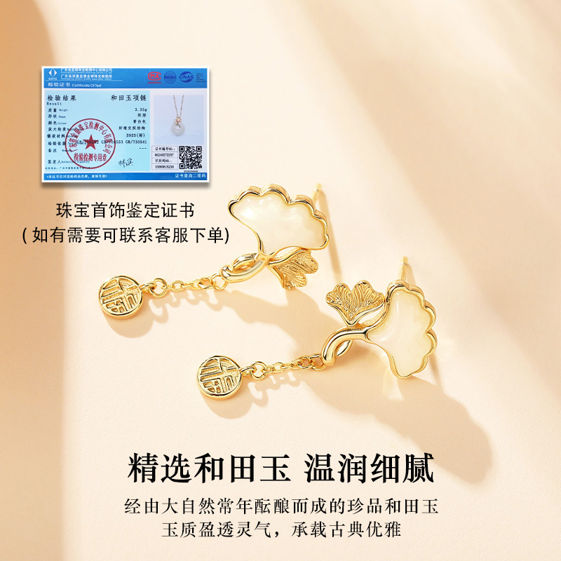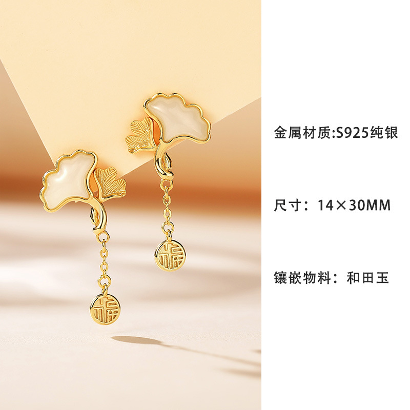 Серьги из натурального нефрита Хэтянь с абрикосом из стерлингового серебра 925 пробы, модные, хит продаж, маленькие свежие серьги с листьями гинкго для подруги