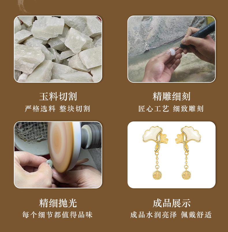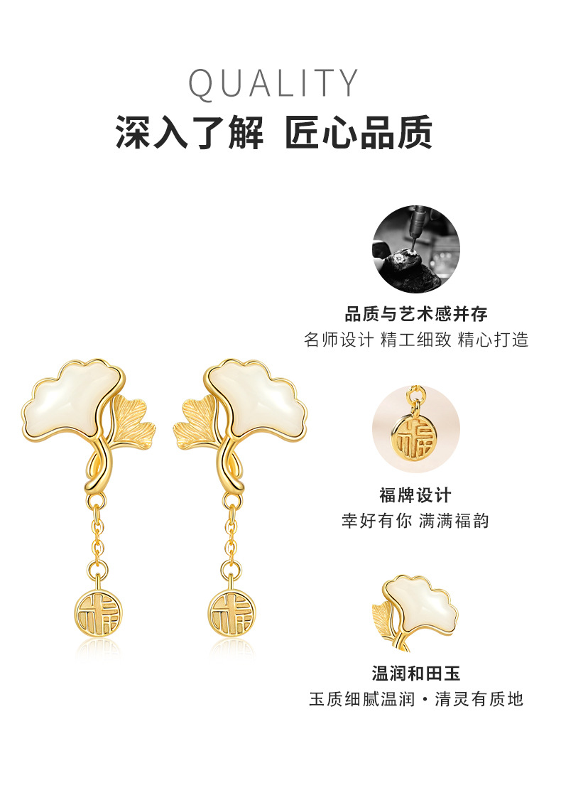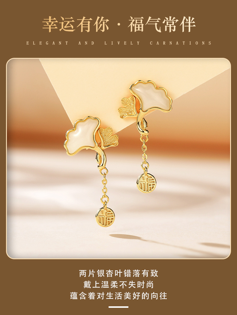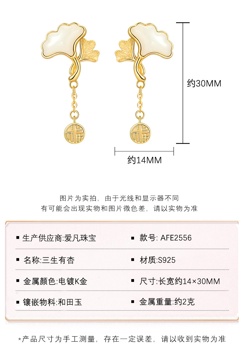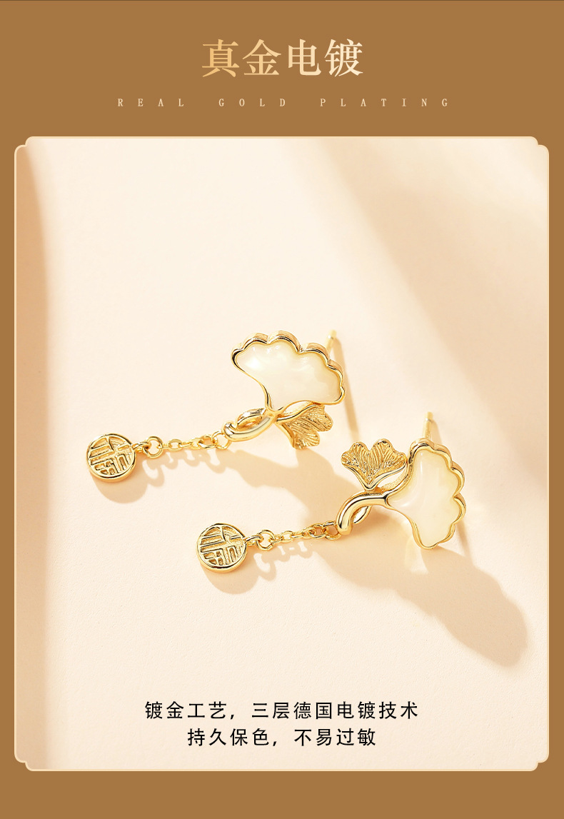 Серьги из натурального нефрита Хэтянь с абрикосом из стерлингового серебра 925 пробы, модные, хит продаж, маленькие свежие серьги с листьями гинкго для подруги