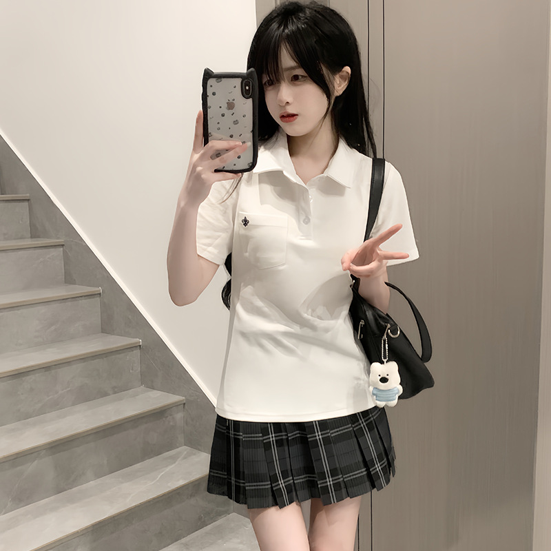 JK оригинальная рубашка POLO 2025, летняя рабочая одежда, универсальная школьная рубашка в консервативном стиле с вышивкой на талии и короткими рукавами