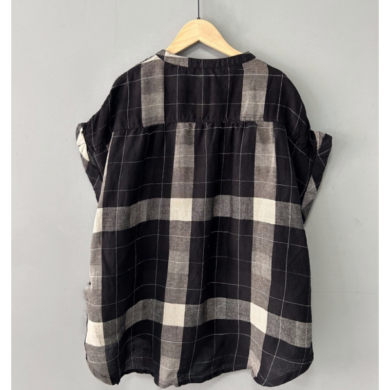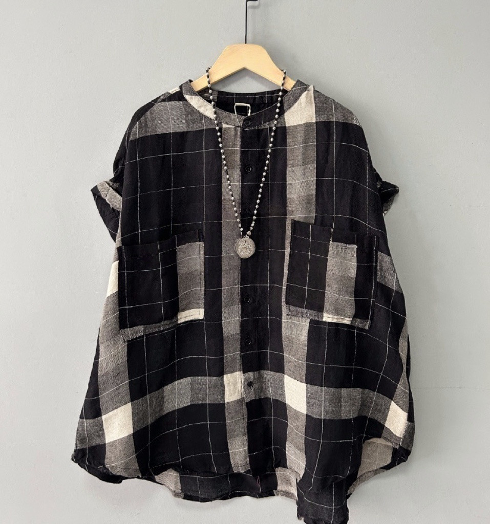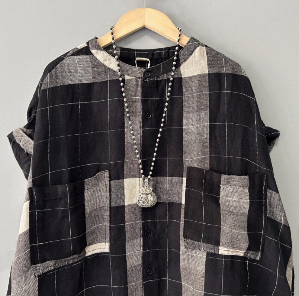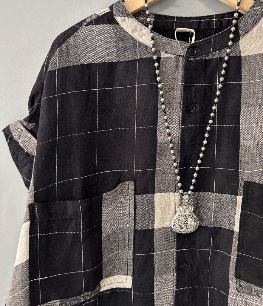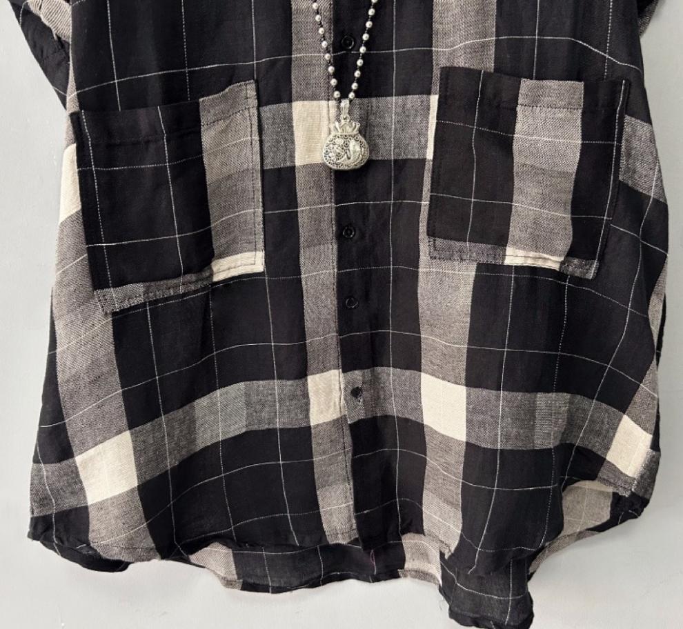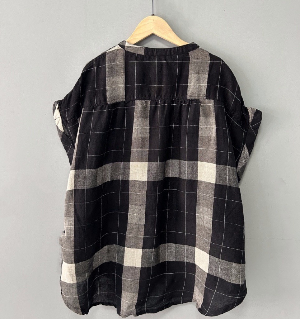 В наличии женская рубашка на пуговицах в клетку из хлопка и льна с цветными блоками, летний свободный простой универсальный топ больших размеров в стиле ретро с короткими рукавами