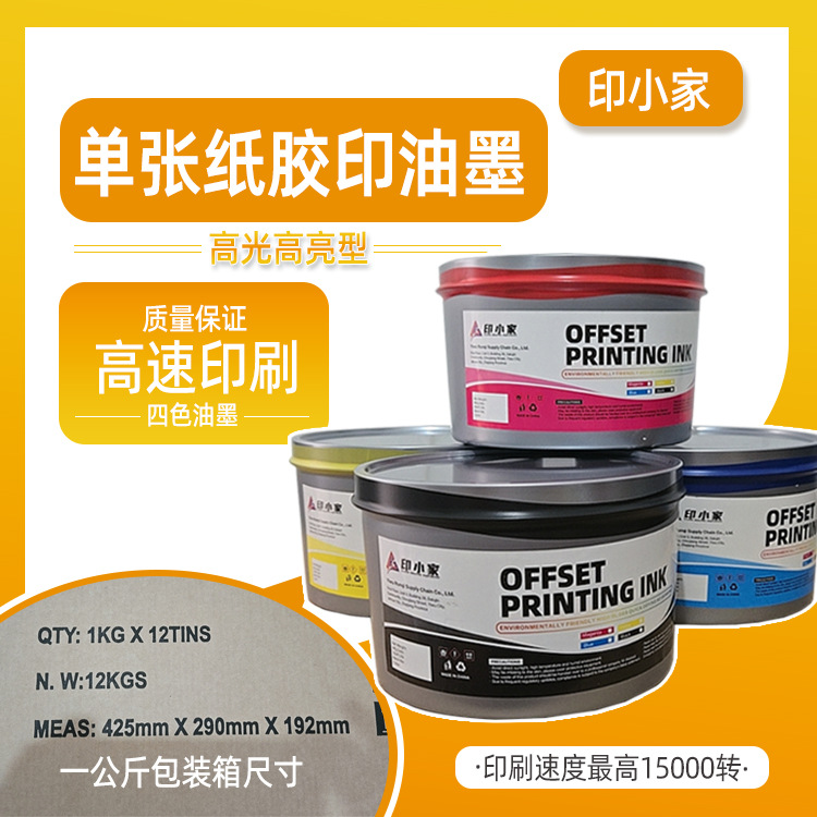 单张纸胶印油墨本产品适用于胶印四色机,双色机上印刷铜版纸、白板纸、卡纸等印刷基质,以印刷高级画册、画报、广告、商标、说明书及精美的纸质包装装潢制品为主要用途,可适于10000-14000印/小时以上的印刷要求,并具有固着速度快,在纸上快干,在印刷机上慢干的性能,适用于胶印四色高速印刷,本产品印刷机墨斗内48小时不结膜,停机9小时磨辊不干,可正常开机印刷。