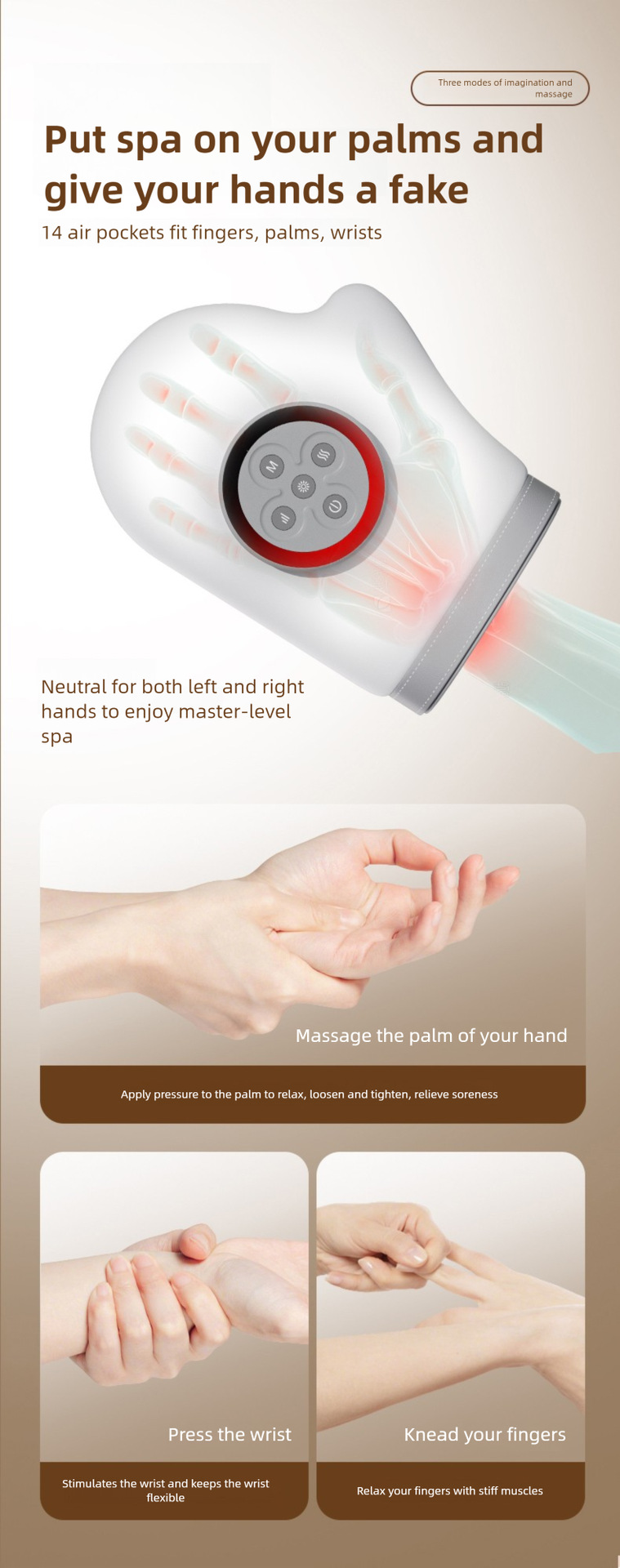Новый трансграничный массажер для рук с тепловой терапией для пальцев, полностью автоматический электрический массажер для суставов с функцией разминания и прессования.