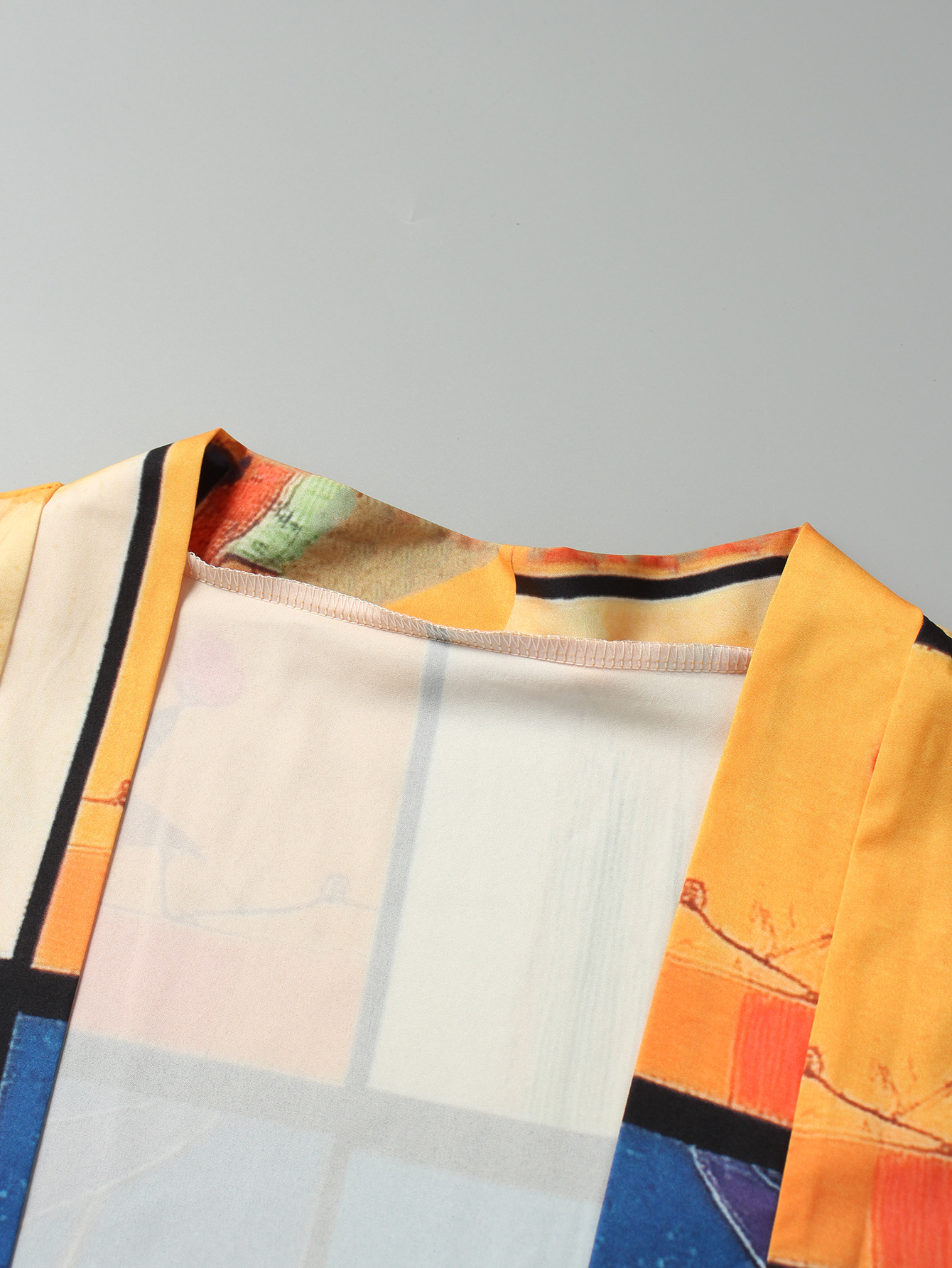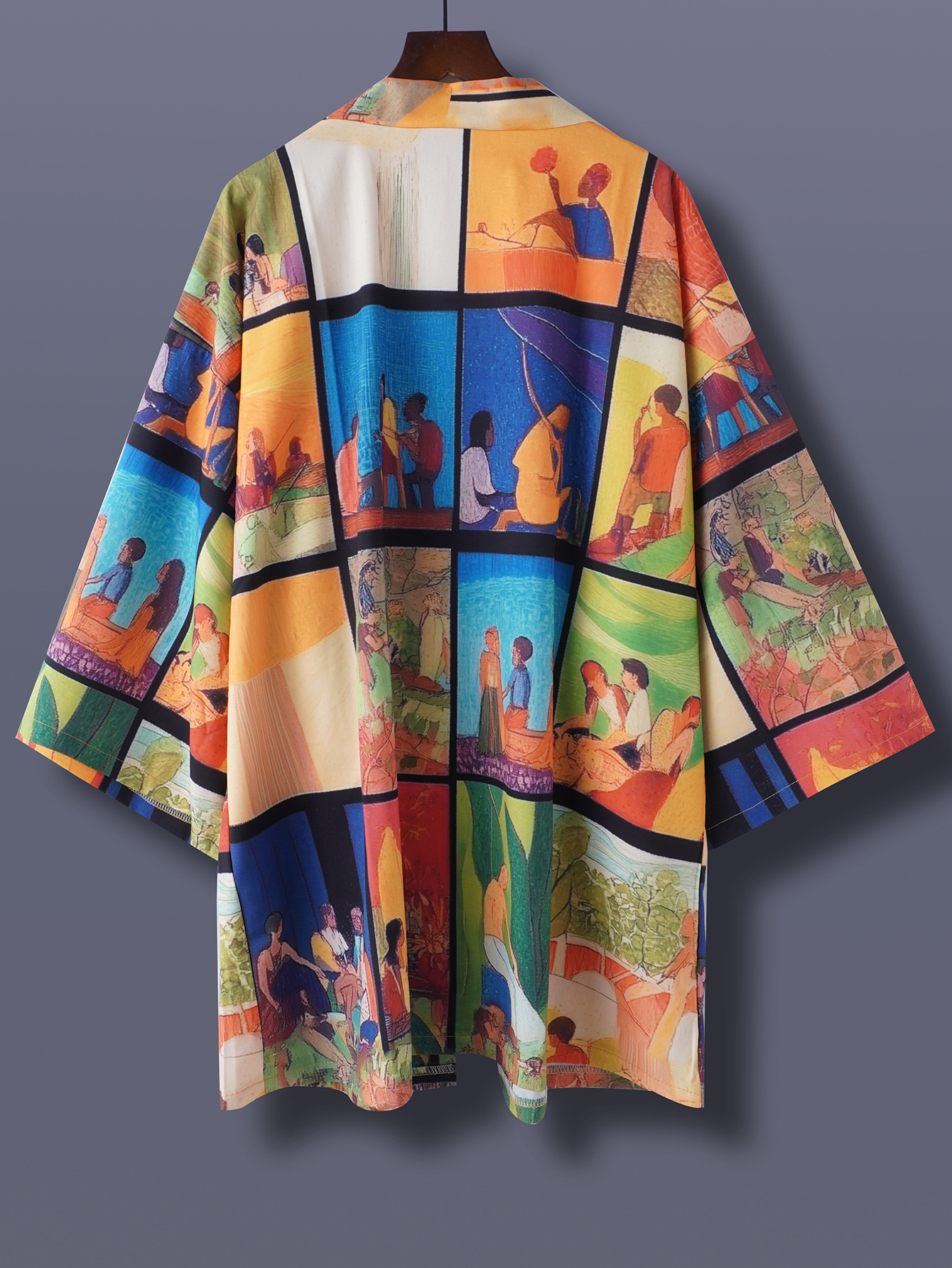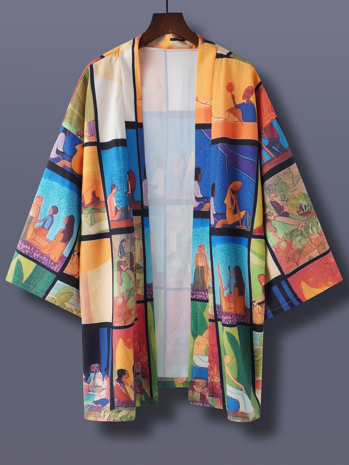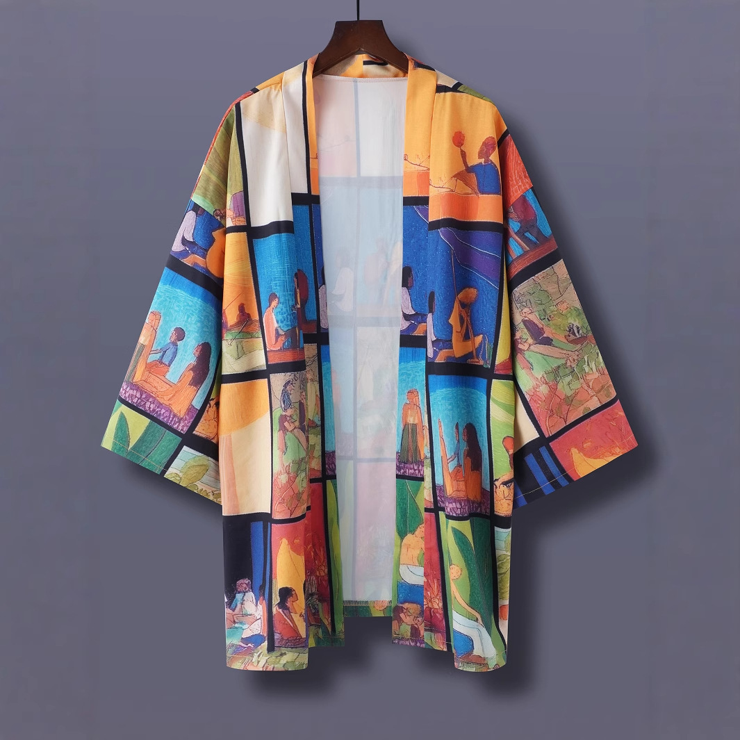Свободный стиль Harajuku bf, стиль для пар, тонкая верхняя одежда с перьями в японском стиле, аниме, гуманоид, клетчатое кимоно с абстрактным принтом, кардиган